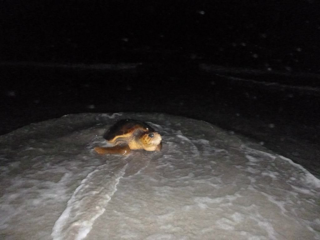 Then we were all just standing there BS'ing when this big old turtle just comes right up to us, looked at us for a little bit and then turned around and went back into the ocean: