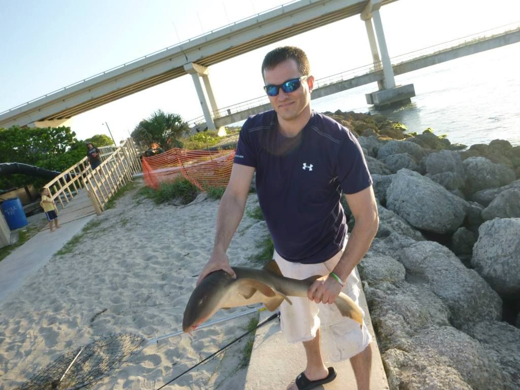 We headed to Sebastian Inlet that afternoon but no one was catching much of anything all day except John managed to catch this small nurse shark: