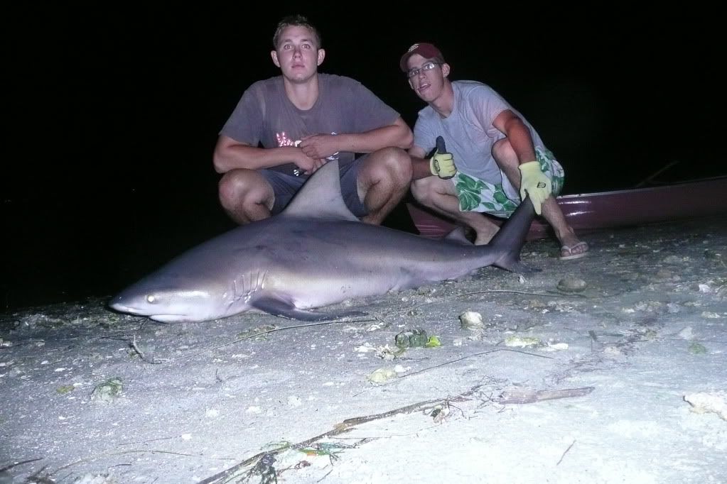 The three of us took a canoe through the mangrove swamps and into charlotte harbor to fish an island. We stuffed our shark gear into the canoe and paddled about two miles to reach this island. We had no luck in catching bait but when we got to the island we saw a lot of rays and mullet and ended up gigging 10 rays and castnetting 2 mullet. As soon as we got back from dropping the mullet off we get a run. Ended up being a 5'8" bull . After the first shark i get a run that cuts me off immediately. Since the oyster bars were too bad at this spot we moved our stuff to the backside of the island to fish the channel. We drop mullet and rays in the channel and not 5 minutes after the mullet gets dropped we get a run on the 6/0 and its a nice size bull it starts running for the channel markers so we didnt even think twice about jumping into the canoe and chasing it down. after getting hauled around for a while we try to inch our way to the beach but the bull spit the hook by the time we got a chance to land the canoe. after about 20 minutes we get another bull shark about 15-20 yards out. This one wasnt measured but im guessing 5 foot.