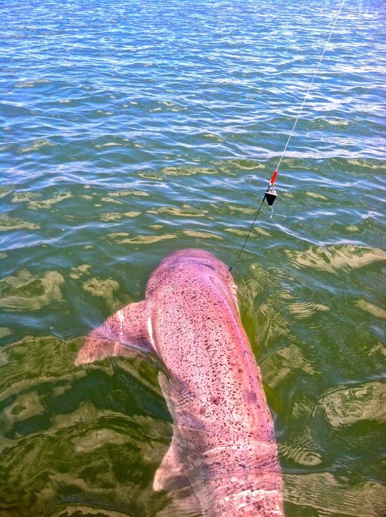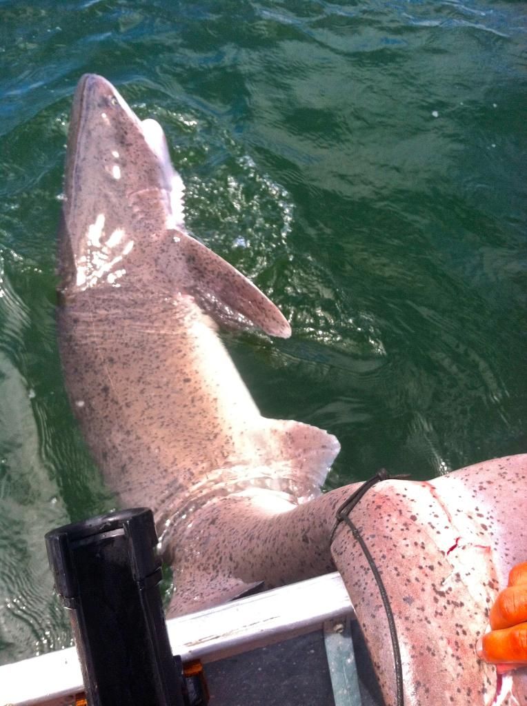 Finally get the tail lasso off and let him go. Missed one more shark after that but it was slow fishing. Saw two (maybe the same one) thresher sharks jump right off the boat. Only about 4' but still cool, the first time I had ever personally seen one.