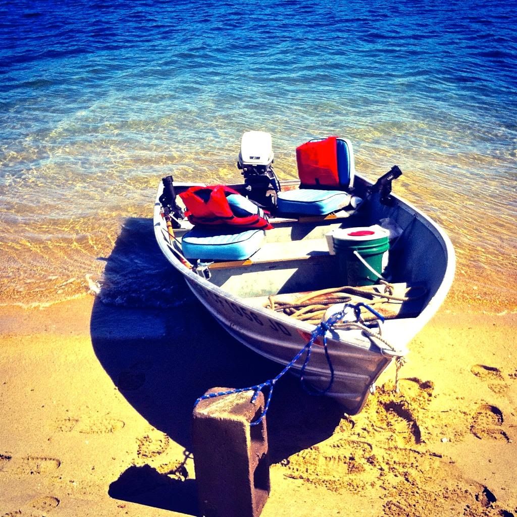 At this point Max is dying for his own shark, so I rebait the squid rod with mackerel to up the chances. Just as he opens his beer and takes a sip the big spinner screems to life. From the first run and how it was fighting we figured it was a nice ray. Max is cursing the "ray" out for not being a "stupid shark". Then we get a nice tail slap and see it is a big Sevengill. Funny thing was it took a 2" tail section of mackerel. Get all the rods up, detach the anchor line and pull the chum bucket. Once boatside I desided to try a healthier option for the shark and wrapped the fish in a big sling behind the peck fins and slowly drive to the beach head first. Sorry that the photos look the same as every other trip. It always seems to be the same time of day, sunny and the same beach lol.