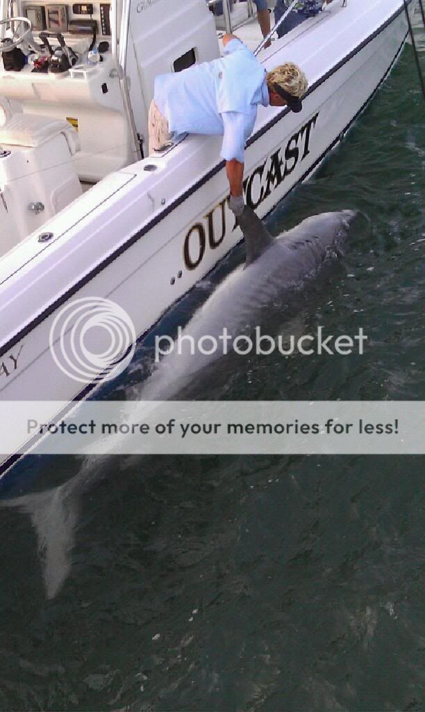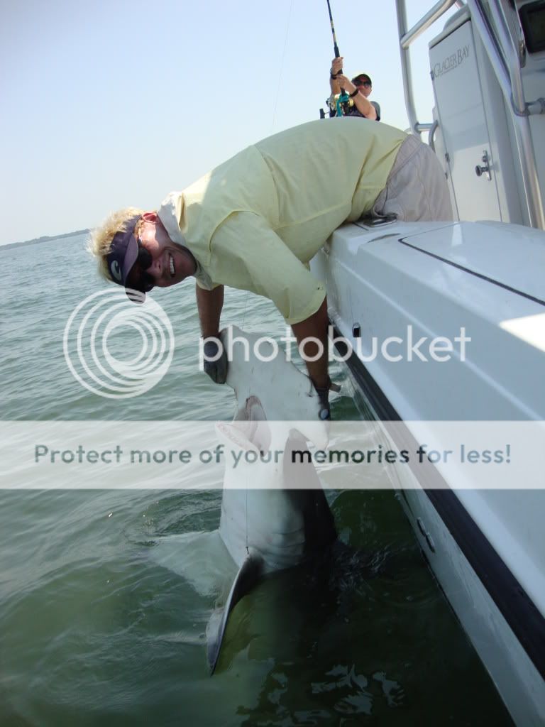 As for the tourny; I got smoked. Something weird happened that I've never seen before. I had a good Tiger season but a week before the tourny the Tigers just disappeared. I panicked thinking the blacktips were just beating them to the bait, but for some reason ALL the tigers off SC just went missing. A week after the tourny, they returned and I started catching them again, averaging about 2 tigers every 4 hour charter and one that would have given Walter Maxwell a run. On tourny day we caught bulls, lemons, blacktips and even had 2 bulls on at the same time , but no tigers. And only a baby tiger was weighed in at the tourny. A 500 lb hammer won it and a 200 lb lemon was 2nd, I could have had 2nd place with any of the bulls and lemons but I didnt want to kill one unless I got most of the tokens, just not worth it. The Tigers are still on fire, but for 2 weeks they were gone......probably better for them to be gone that weekend anyway.