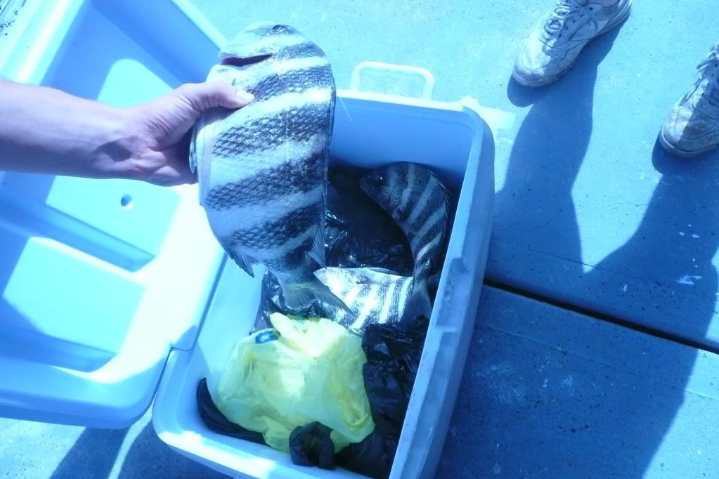 after we got our bait we decided to go sheepshead fishing. got three nice sheepshead and went back to big carlos to drop them for bait.