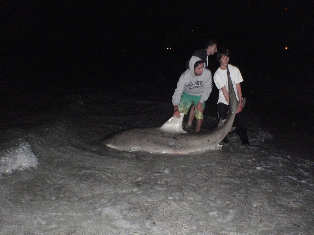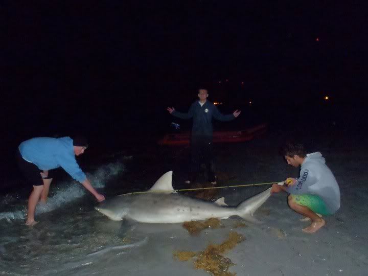 lmao at fishing in the seaquarium tank. I could have sworn this shark was the one i previously caught, it was just a tad larger, you'll see in the pic it's like 9ft and .5 of an inch. lol hopefully they just keep getting larger and we keep catching them