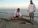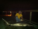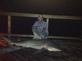 We had a great year with several good fish caught. Hate this is a bit late but I like it like that. We finished the year off with 130 sharks over 5'. That count includes 5 team members and the fish they handed off. This year the count is gonna be diffrent. I realy hated excluding other fishermen from my count. I'm counting everything my head rope goes around. I'm also counting everyones separately. The best fish was an 11' tiger by John Cutherll. John also caught a 9' scolloped hammer. Total hammers was 5. There were 2 at 9' and 3 at 8'. I caught two. We also caught 3 big dusky's. A 9'4" 8'10" and 8'8". I cut a packing band off ones neck that had been there so long it had grown in to it's skin. We have caught 3 sharks that same way this year. We caught 6 tigers over 8'. No makos for 2012. The last few posts we had harvested the fish in the post. We tagged over 100 sharks last year. We harvest about 5% of what we catch. So we are primarily in to tag and release. We also caught and returned three tagged fish. I fish every fishable day possible through the winter months. I treat it like a job. Everyone depends on me to get there bait out. Orca has helped catch over 250 sharks. My little RC tug boat is bad ass! Very dependable even in rough water. Everyone likes me and loves my boat. Haha! I'm gonna get Brett to post some pics. Iv got some videos comming. Orrin Jhonson has videoed several catch and release sharks. Y'all watch this post for the video links. I also have new video of the 8'9" mako I caught. The new video is watching the fish. I'll post it soon.