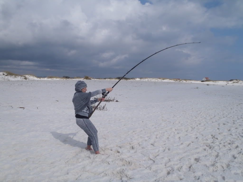 fish. We have do to manouver between the rods and down the beach we went. I asked my wife