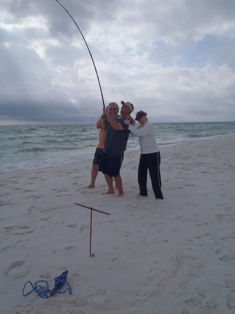 him closer into the surf and we were able to leader the fish. Sonny reached out and grabbed the