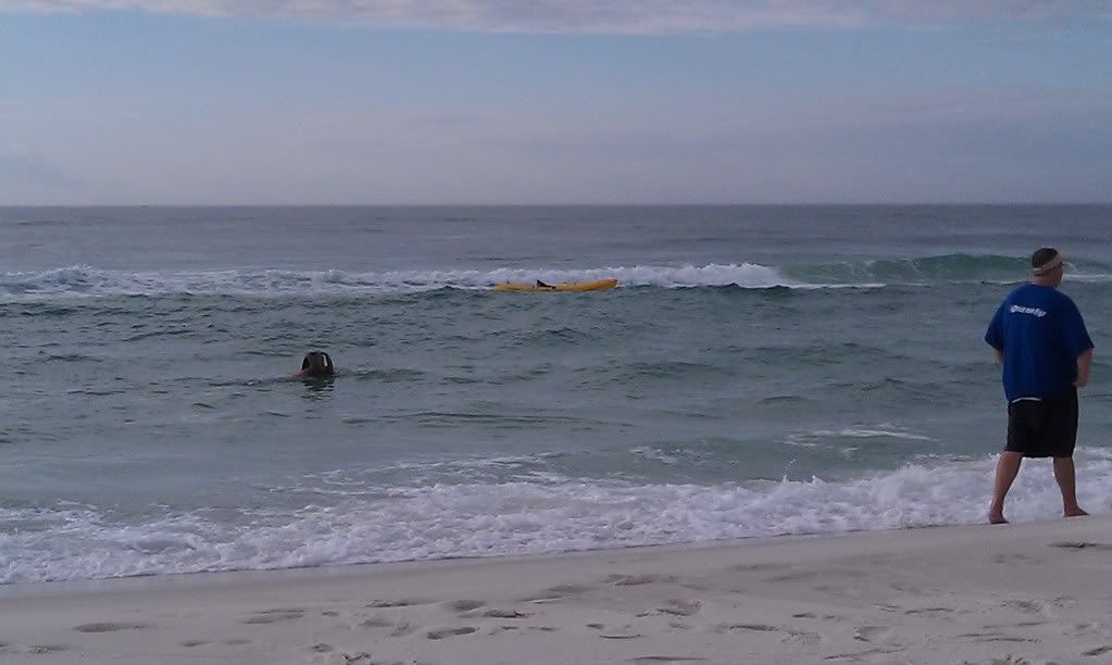 The surf really beat me up the day before, hit in the head a few times, having a bum leg.