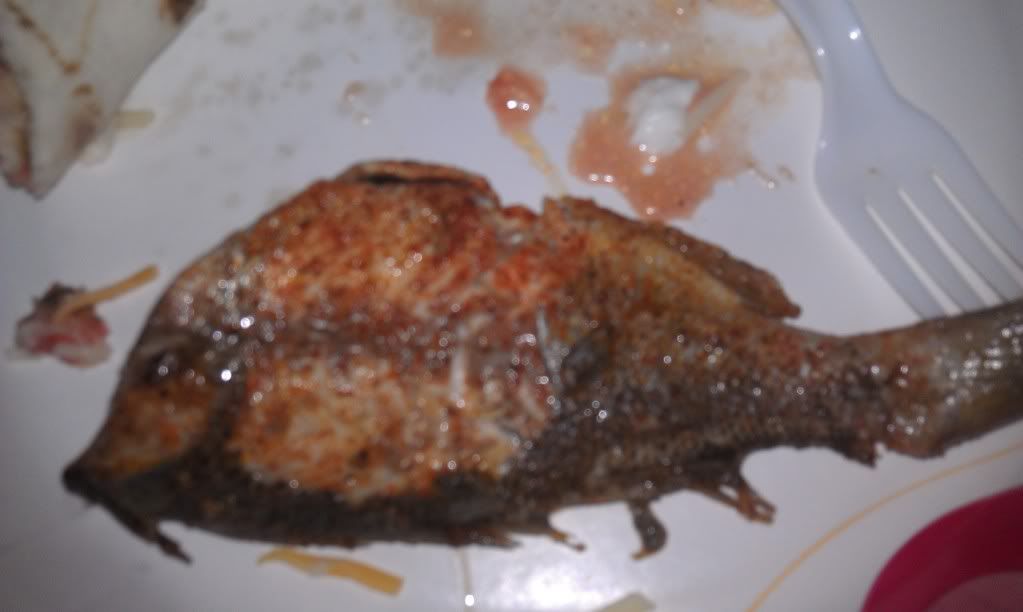 We prepared for dinner, leftover fajitas and fresh fish. I cooked the and deheaded the fish earlier