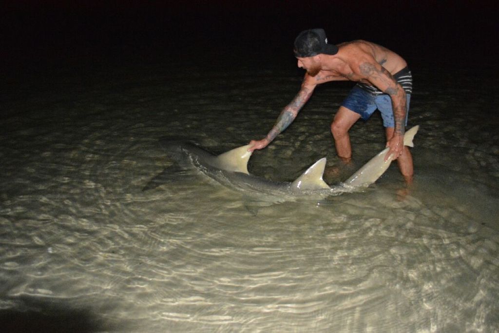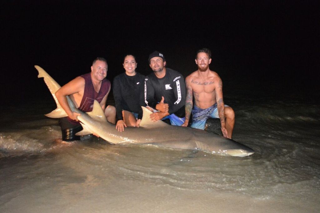 It wasn’t until just before dark that the first rod went off. This was Brett’s rod with a whole mac tuna. This was one of the slowest runs I had ever witnessed and we were calling for a big tiger. Sadly it wasn’t to be, it was only a very lazy small lemon. We didn’t bother measuring him but we guessed around that 7’ mark.