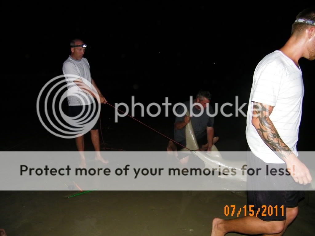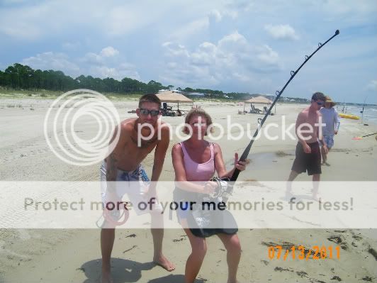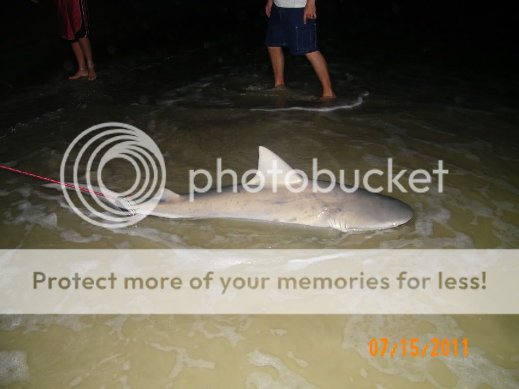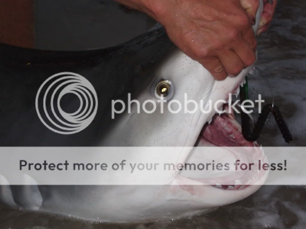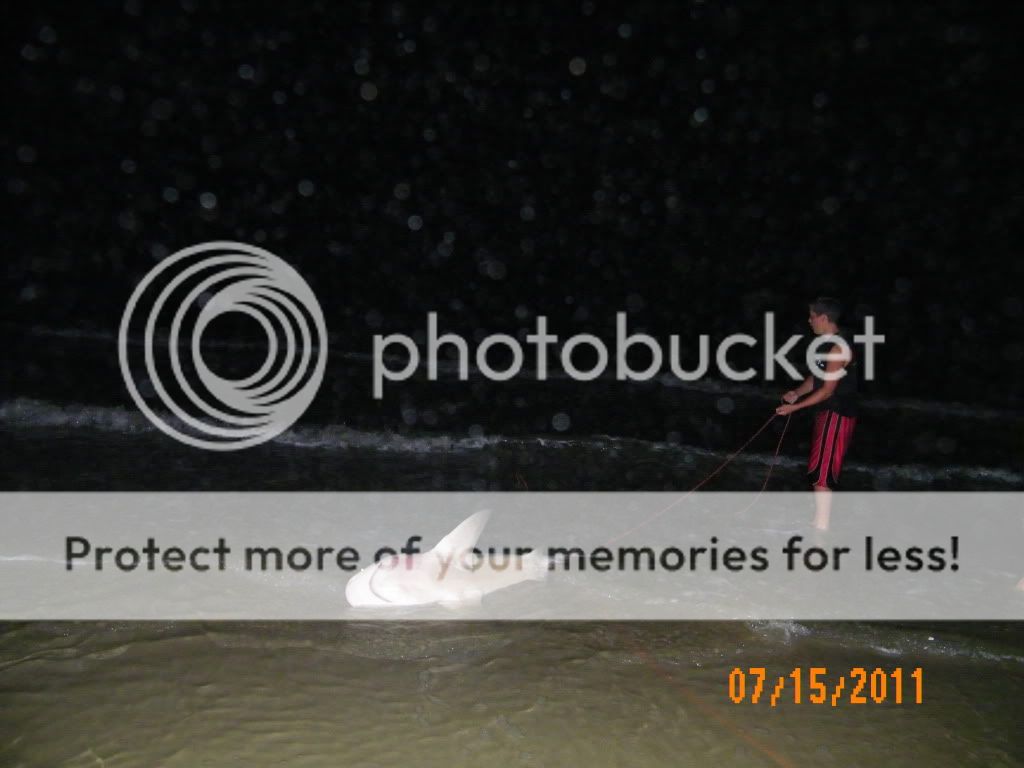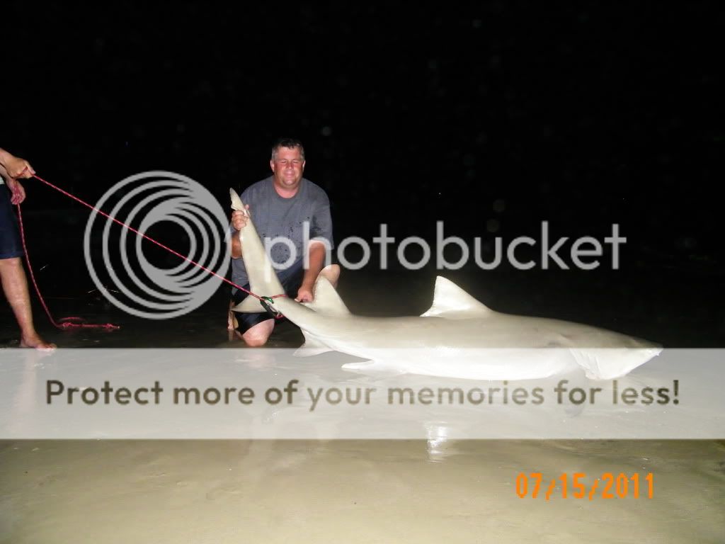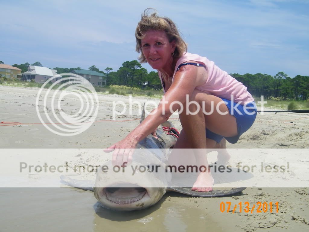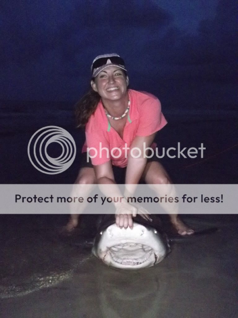 Me and Christi left for florida wed. afternoon after work, we drove all night to get to our spot. We arrive to see some un-favorable condtions, but lets fish. We met up with ( jeff fangman, his mom susan(sharkmom), grand isle sharker, his son chris..aka Drama, and his friend Shane ). Bobby arrived earlier on wed. morning. Not soon after Bobby arrived, he landed a big bull at the end of the leader. As they are leadering the shark in the wash, the hook pops loose and bye bye