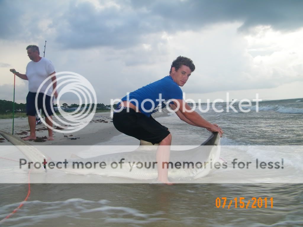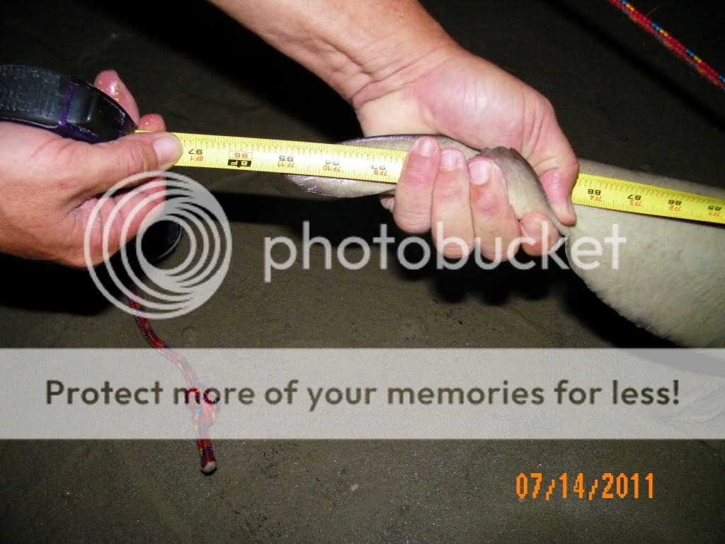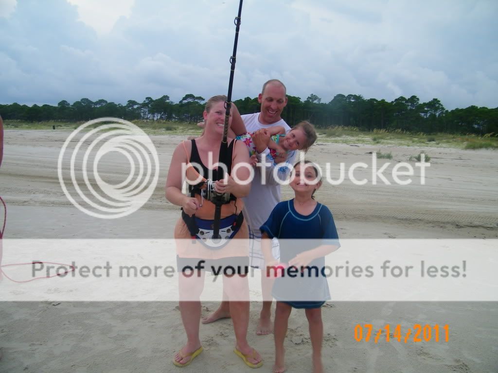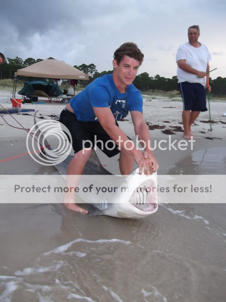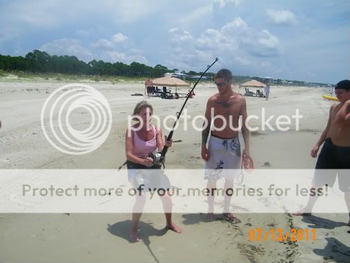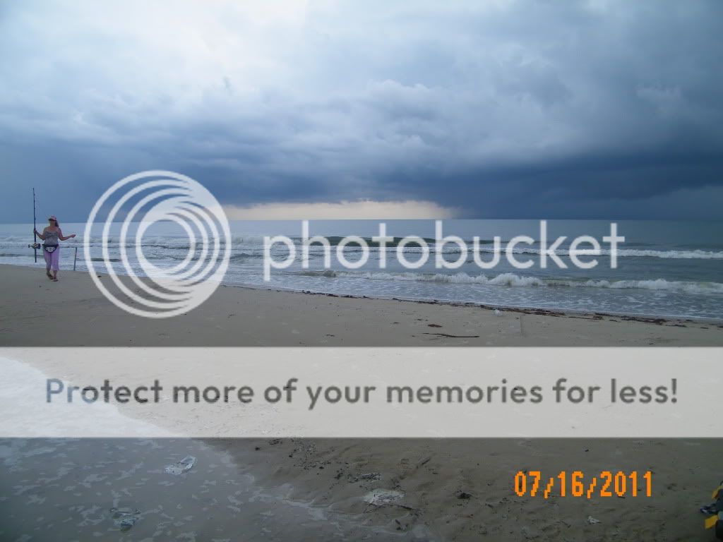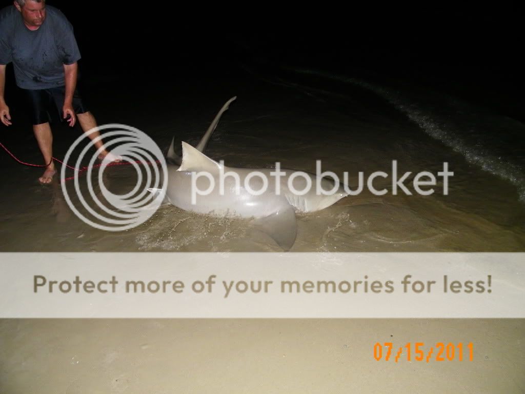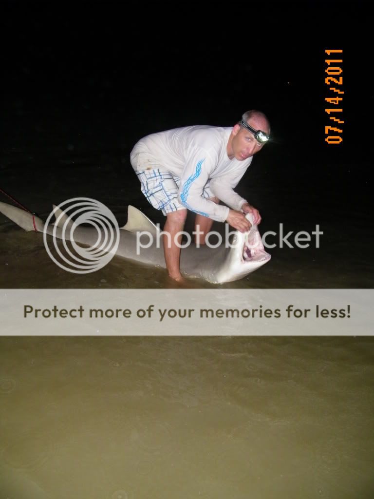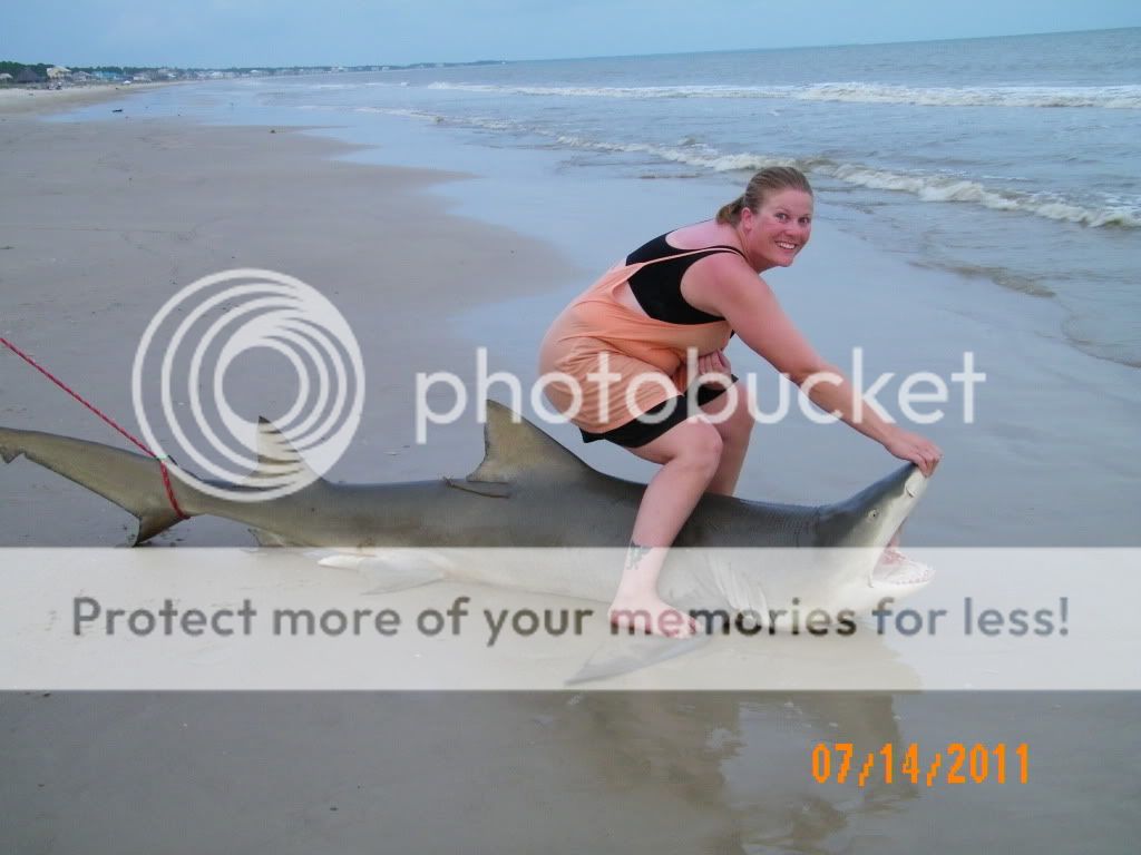 Me and Christi left for florida wed. afternoon after work, we drove all night to get to our spot. We arrive to see some un-favorable condtions, but lets fish. We met up with ( jeff fangman, his mom susan(sharkmom), grand isle sharker, his son chris..aka Drama, and his friend Shane ). Bobby arrived earlier on wed. morning. Not soon after Bobby arrived, he landed a big bull at the end of the leader. As they are leadering the shark in the wash, the hook pops loose and bye bye