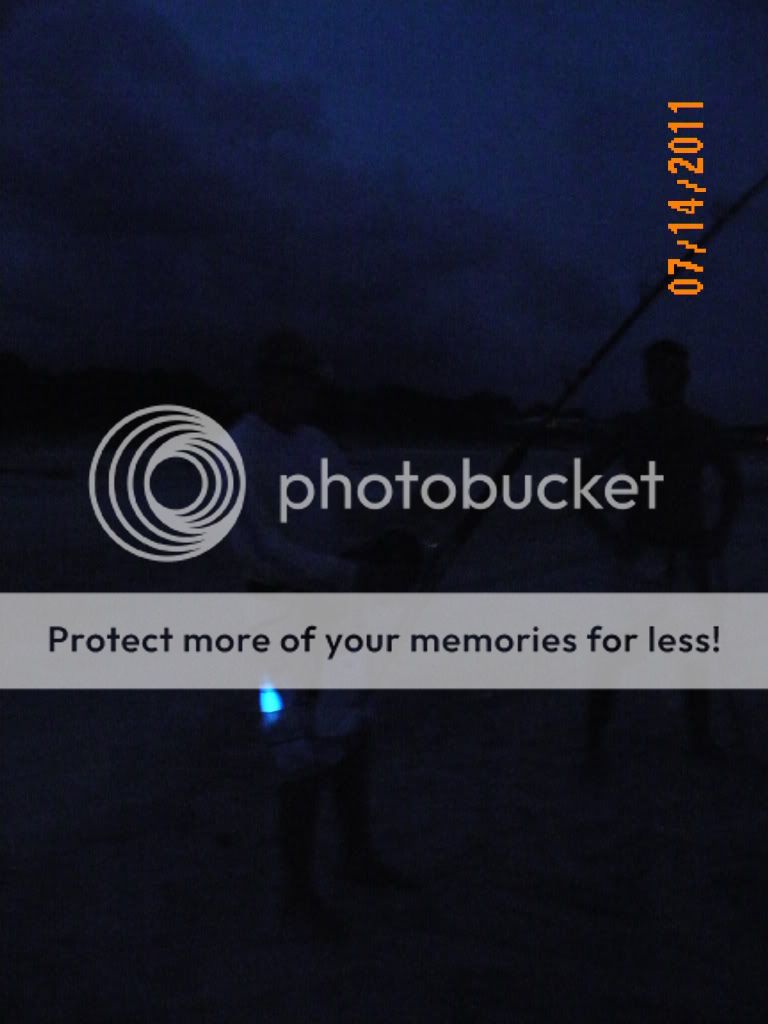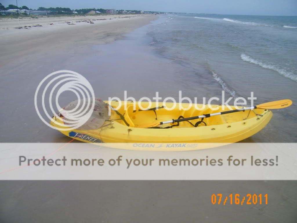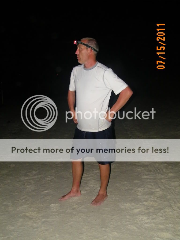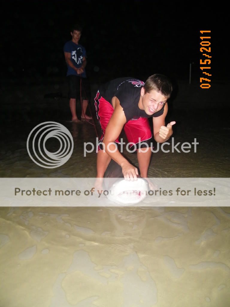 Now we are going to get to the best part. The last night that we were there we had the best time. thoughout the day we had been gigging we would snag some big blue crab that were in the surf, and we would give them to the kids to play with. Well i guess kara must have put one in the kayak seat, Later That night i run a big ray looking for the monster i missed the last trip.