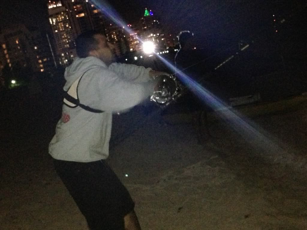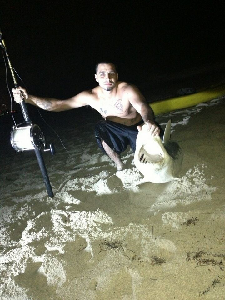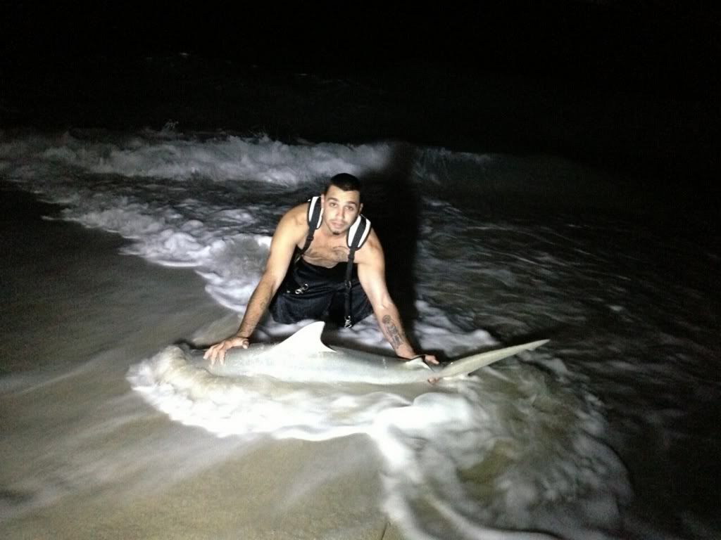 i got out of work yesterday and i called my bro to see if he wanted to hit the beach .. he had things to do so i called some of thr dirty sout and they where like its to cold the only one that was down to go was tony A.K.A seawolf ... we got to the beach around 6 .. i was the first to take out my baits as soon as i got back tony was ready for me to take his bait's out so i took theme...he's the only person i would take baits out for .... i took my bait out about 200-350 yards and tony was about 150-250 ... the firs rode to get hit was my 16/0 and it was a dam blacktip ...i took it back out like 200 yards