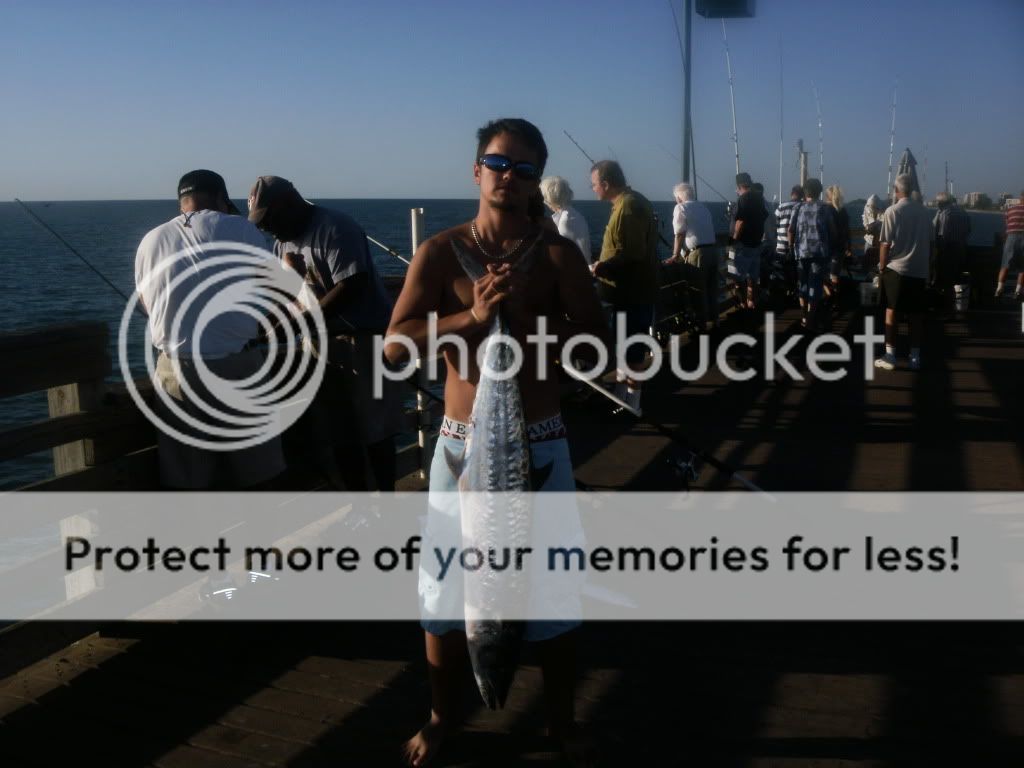 So me, Joe, and my buddy go out to sharkys the other day to kingfish.. just like any other day... We get there and bonita start showing up, we help a tourist land one and he gladly gives it to us... so we swim it out... four hours later - a screaming reel - and a hook set... as Hammer and JD Fagan will tell you the crab pots are a pain in the a$$ out there right now.. ( they had visited out there a week ago - JD Fagan got a nice 6 footer bull).. so Joe fought the fish for an hour around this crab trap, eventually getting it to break away... given this was in the middle of the day we had a lot of boat traffic to worry about and a lot of tourists crowding the rails.. against all odds we still managed to land the fish...