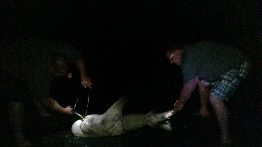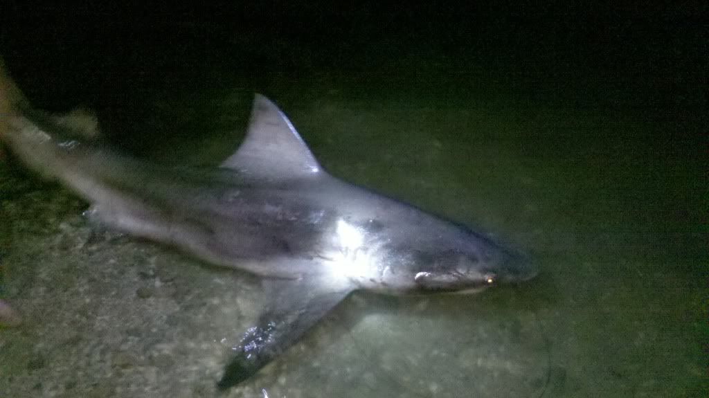 Set up sunday night and put out 3 rays with plans to fish a couple hours and call it quits early so we could get some rest for the 14hr run home on Monday. Got a run about 1hr after dark and landed another bull, around 6'.