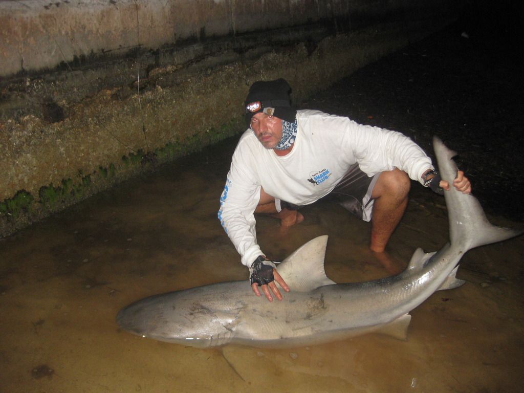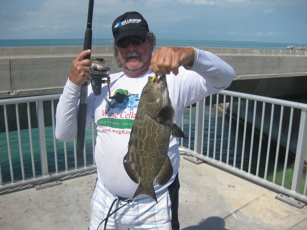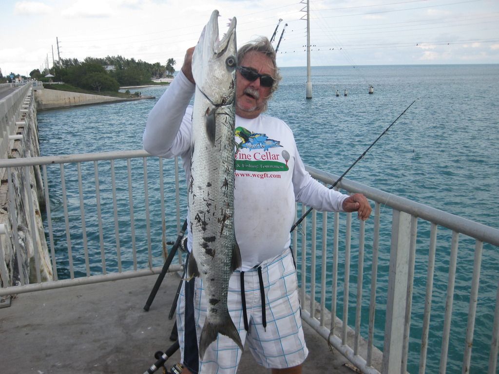 We hit long key yesterday. The mullet were on the flats. I netted about eight. WE troweled the bridge for cudas. I caught two nice ones. That night Jonathan and I hooked a big bull and the hooks pulled. Later we got picked up again.It was a small bull. This morning we saw three Jew fish. I put out a jack on my 9:0 and the fight was on. He pulled me into the piling. I pulled him out. here are some pics.
