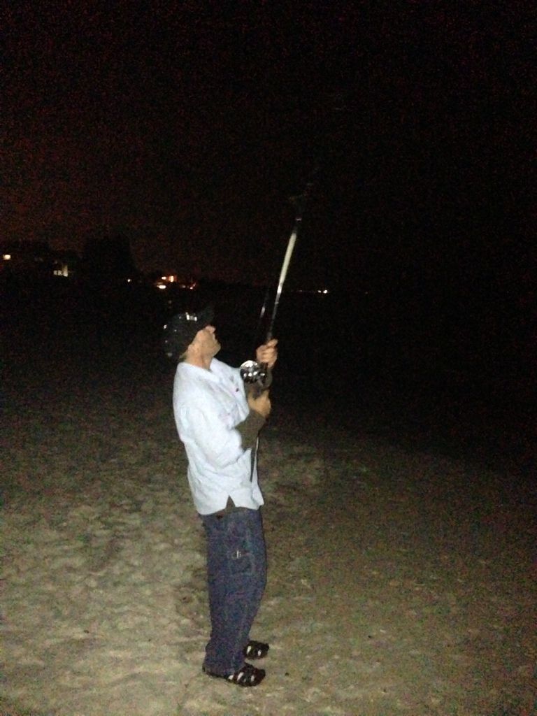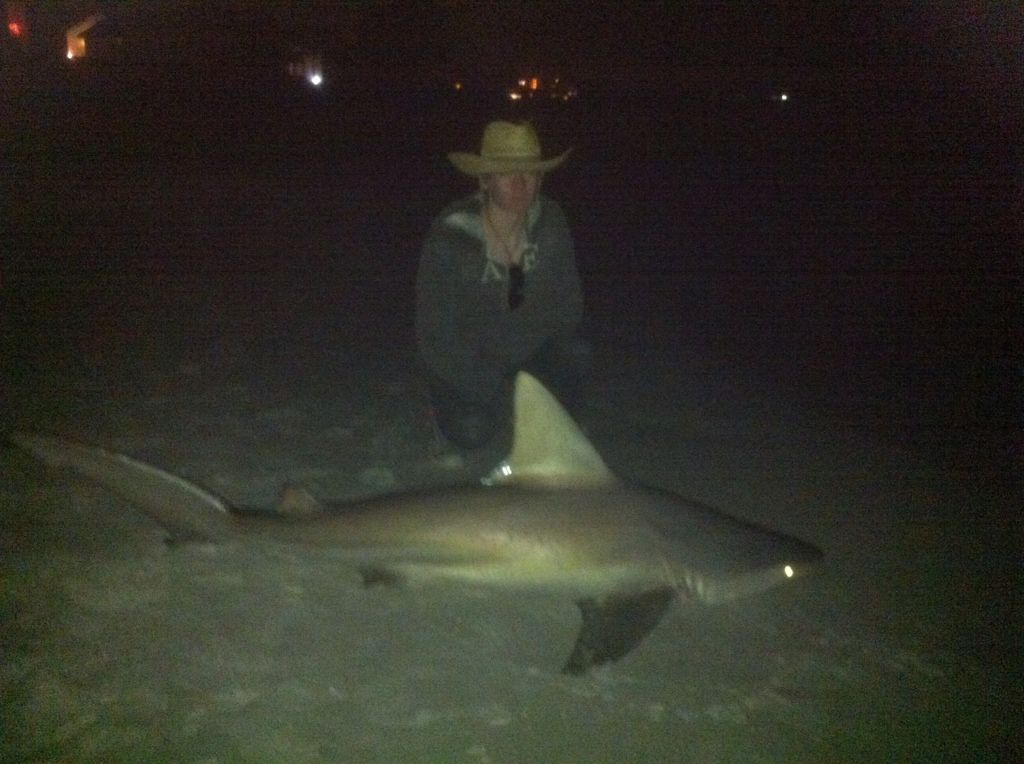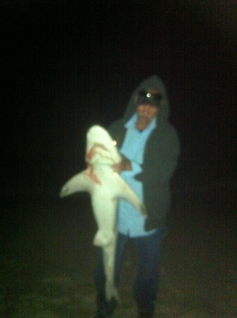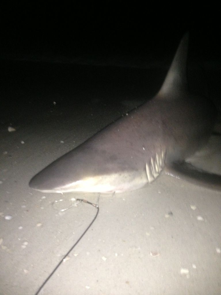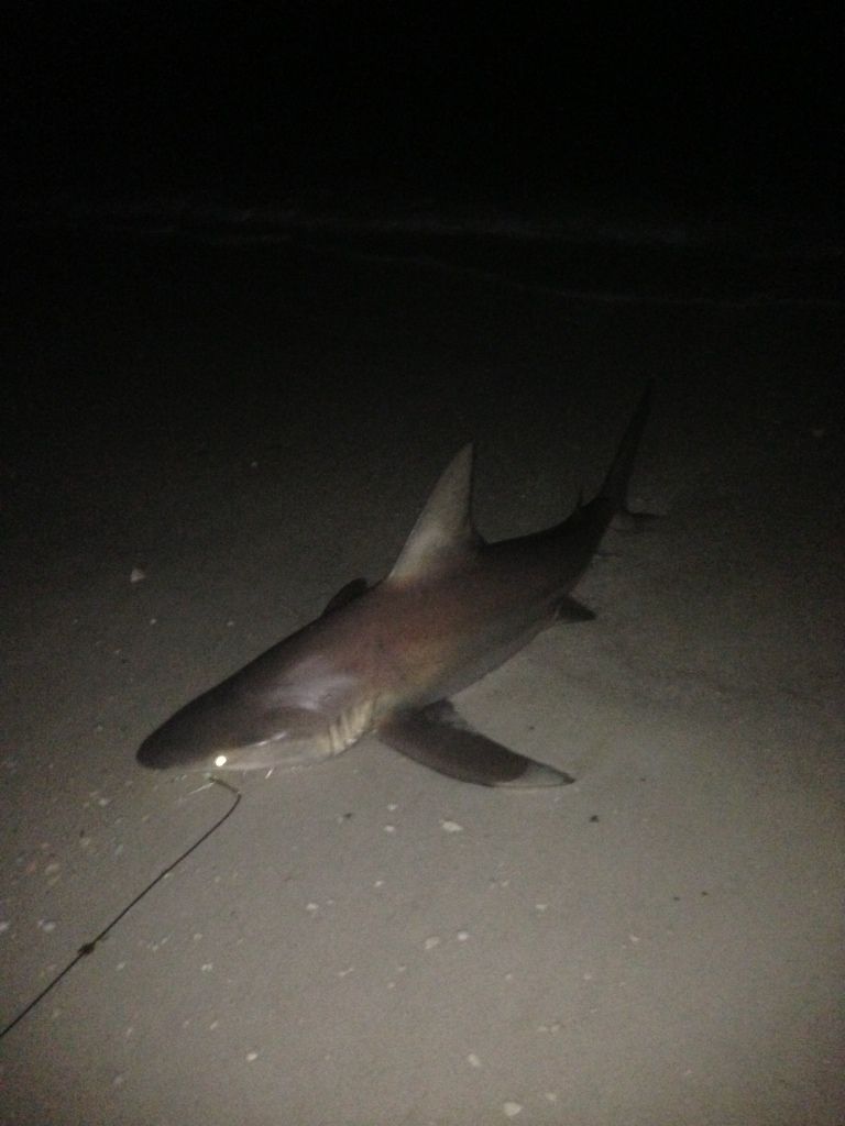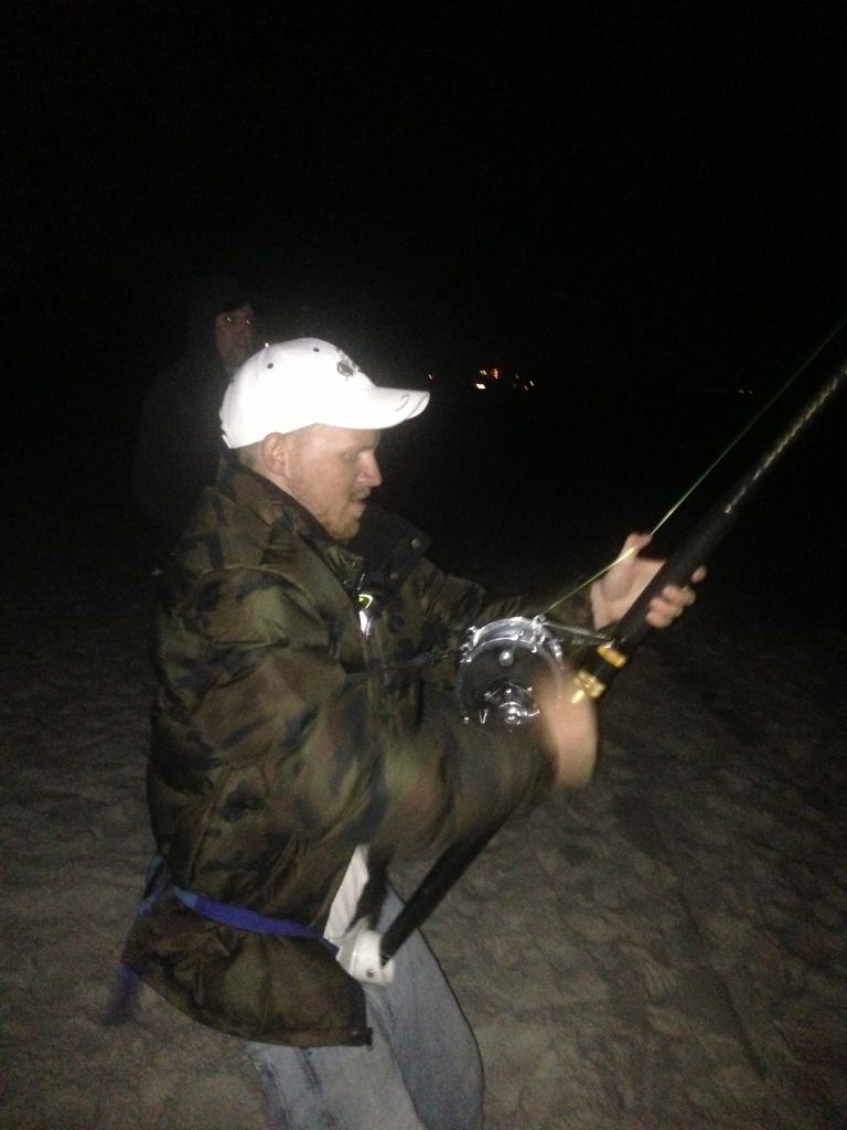 family came down for a visit from ohio so i decided to take my younger brother and stepfather out for some blacktip action got bait around noon and was on the sand at 2. the front moved in and we some rain but during the calm of the storm we could see the 6 ft shadows lurking on the sandbar time too deploy baits shortly after i landed tipper then we started a trend of 8 sharks in a hr and half, putting my stepfather on his first shark. pics will be up later