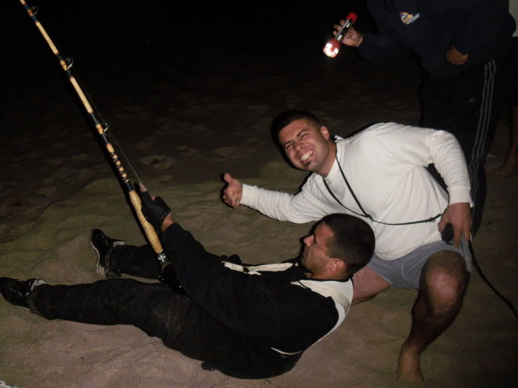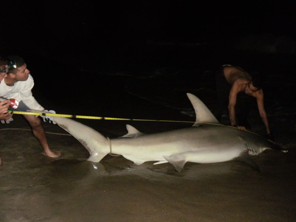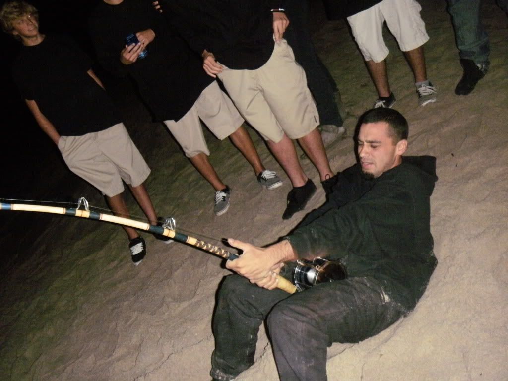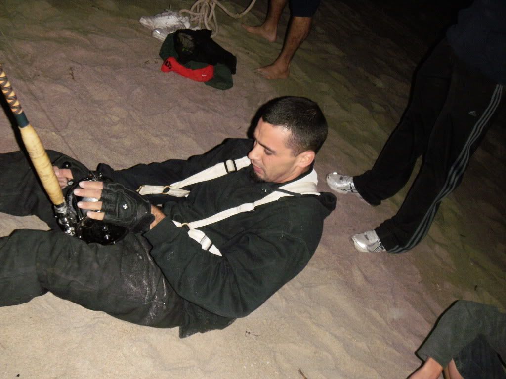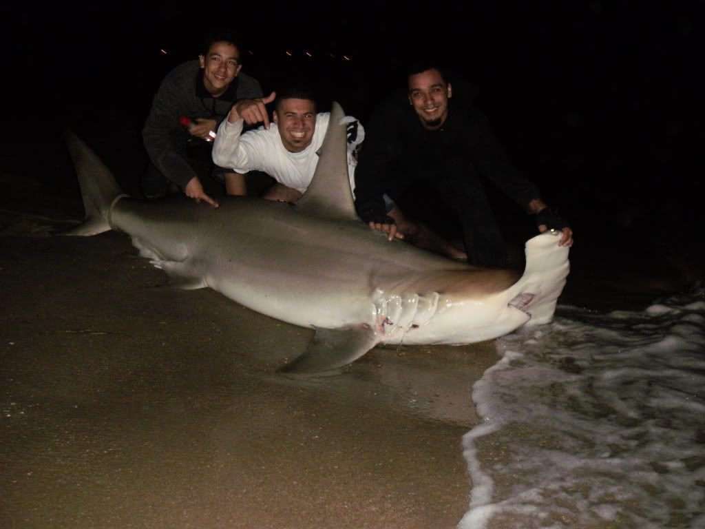got a call from will thursday telling me, this is our last chance on geting a big shark before the end of the year cause of the cold front that will be here on sunday,so i call shanon and he starts telling me some monster x-mas hammer storys about him and rene so im geting hyped.. 40 mins later mark "slasher4x" calls me and tells me that tomarrow will be a great fishing night cause of the back to back cold fonts.so now its friday and i call joe and tell him be at my house at 4:30pm and dont be late, i forgot he is CUBAN so we work on diffrent time, around 6:30 he gets to my house so im pissed off curse up a strom cause we have like 10 mins to get the bait. luckly we get there on time and pick up 3 AJ's. we get to the spot at around 8 pm by 9 we have all the rods out. at 12am i get a call from Will saying joe 's got a big fish on so i run over there and joes is on the rod "team dirty south shark hunters" at it again with another hammer the rest is in the pics....