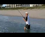 Here's his spectacular catch on 30 lb spinning tackle.There were bigger sharks caught by club members during October 2010 but this catch is notable because it was caught using light tackle and was also videotaped for our enjoyment