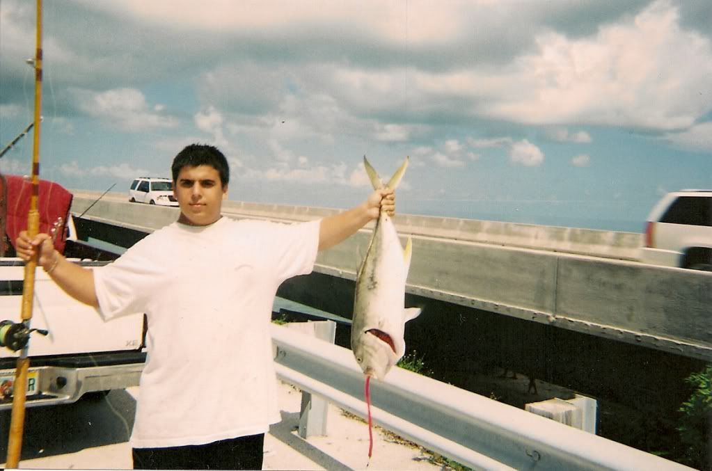 me and j.d. hammer head out to the keys as soon as he gets out from work we went to channel 2 to get cudas they were not there then we check long key and we see they arent there and we need bait so we go out to the moonfish hole to walk live moonfish since they arent hitting tubelures so hammer gets one cuda for the night and we both set out half a cuda for bait within 5 minutes of putting out our baits hammers rod gets hit by a 6 ft bull i reeled up my rod and gathered everything and walked the shark down, took a pic by the seawall and released it. since hammer is satisfied for the night he lets me put my bait out again instead of leaving. a few minutes later i get hit and since it was my first shark from a bridge and it was dark i couldnt see it was going around the elictrical pole so i get caught there and incoming tide starts and there is no way the fish is coming out now so we leave the rod on loose drag clicker hoping he will come out in the morning then somehow the shark swims against the current and came out 30 min. later and we get him straight up and down 6 ft bull we took a picture and cut the line and let him go then. the next morning shannon (south beach seaweed)calls me up and lets us know he is coming down that night with his wife sandra and his daughter brianna and to get bait for him so we walked tubelures on the bridge i got a cuda then im walking a tubelure 30 minutes later and i get a bite set up and it starts fighting hard get him straight up and down 10 lb crevalle on a tubelure