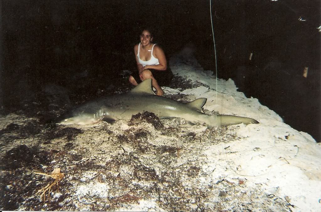 and hammer snags it and we handline him up then hammer gets a big cuda which was used as 3 baits so we had 7 baits total and we met up with them on the beach and set out baits and that night sandras rod gets hit she set up perfect and fought the shark to shore like a pro it was a FAT 7'7 lemon and she now has second biggest shark by a female angler so congrats to her on that she deserved it. we stayed the rest of the night untill morning then we headed back home.
