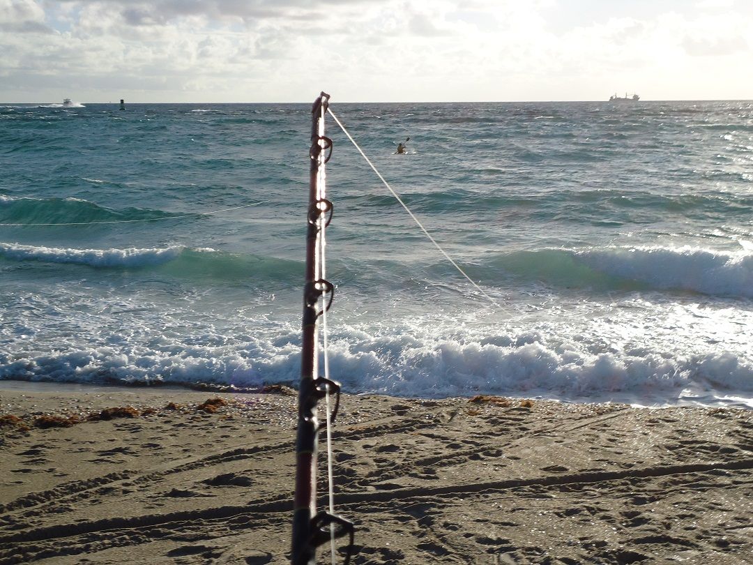 WHEN WE FINALLY GET TO THE TWO JD'S THEY ARE SIDE,ONE FACING SOUTH AND THE OTHER FACING DUE NORTH THERE RODS LEANING ON THE BACKREST OF TWO HOTEL WOODEN BEACH CHAIRS.HAMMER'S REEL IS ABOUT 10 WRAPS FROM THE BOTTOM OF THE SPOOL AND FAGAN'S REEL HAS HALF A SPOOL LEFT ON IT BUT BOTH FISH HAVE STOPPED AND ARE NOT MOVING AT ALL.
