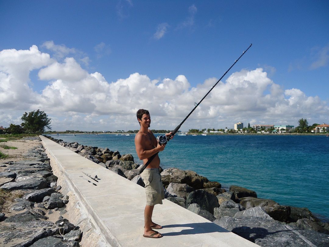 Jimmy practices to get the feel of a Penn Senator 16/0 combined with a shoulder harness