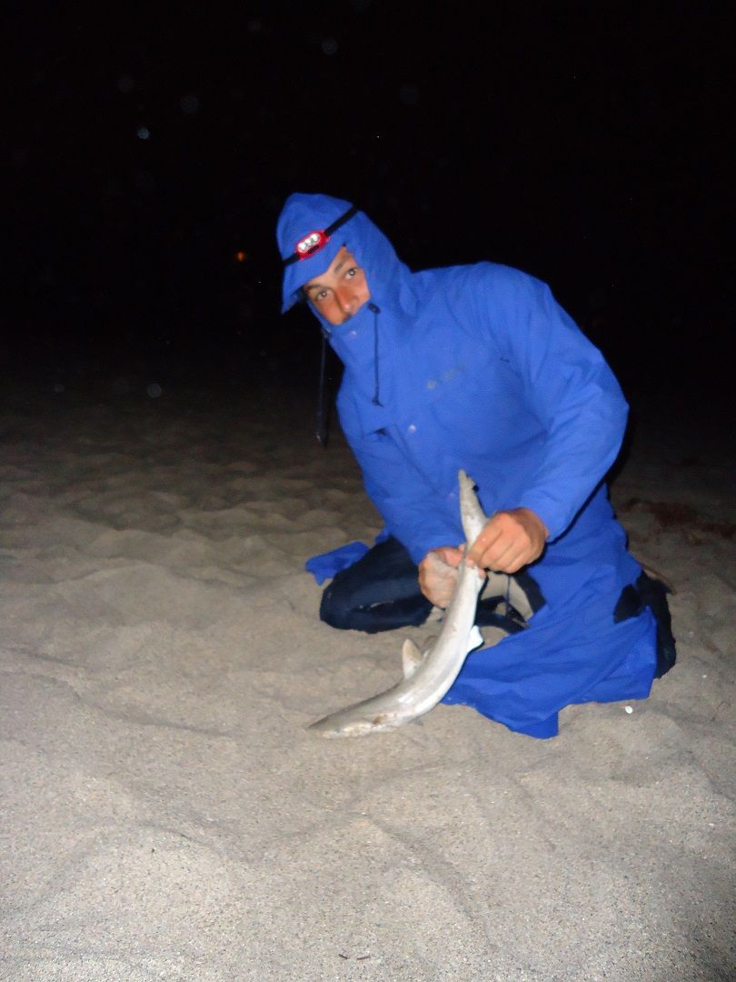 Friday night the wind had died ,the waves have flattened so we join three other teams on King Kong beach for the third night of fishing and we all strike out.That night I hook one fish on a half a jack crevale that runs very fast with the bait without a bit of hesitation but when I come tight the powerful fish has done a complete circle and cut above my 2o foot leader,,,,I'm thinking hammer but so what, no one catches a shark on this beach tonight.