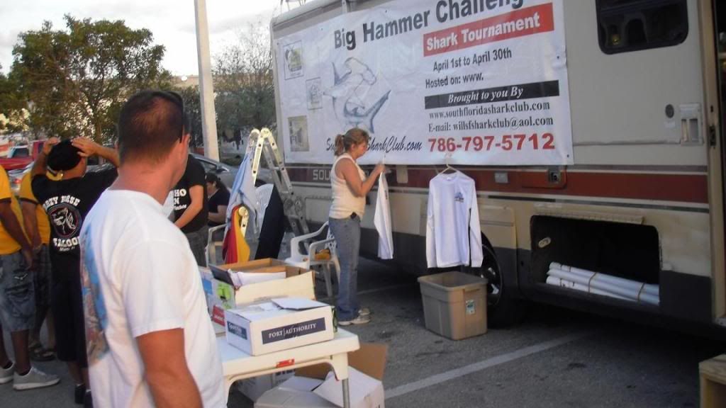 We had a great time and got meet new shark fisherman from different parts of Florida .Hey Joe(Team Hardhookers) nice talking to you budd.Got to sign up a bunch of teams and gave them there official 2010 Big Hammer Challenge long sleeve shirts,and there 2010 Team packets which include the NMFS shark tags.The shirts are the best yet ,everybody loves them.Thanks to One Way Design (Jimmy) for another great job on the shirts.Thanks to all our wonderful handful of sponsors for there support.Looking forward to this years tournament.Thanks to everyone that made it out to the Angler's meeting.