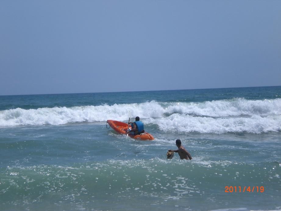 the rough surf and the destructive power odf the white water is evidenced by broken paddle (both sides) and bent handle
