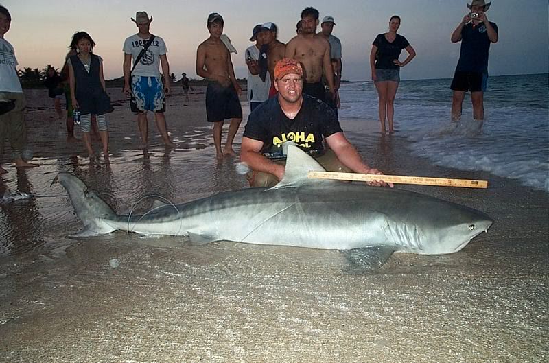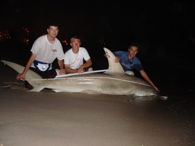TEAM BLACK BART'S Chris Bishop with there winning 11 ft 4 inch Hammerhead shark 2008 Big Hammer Challenge.