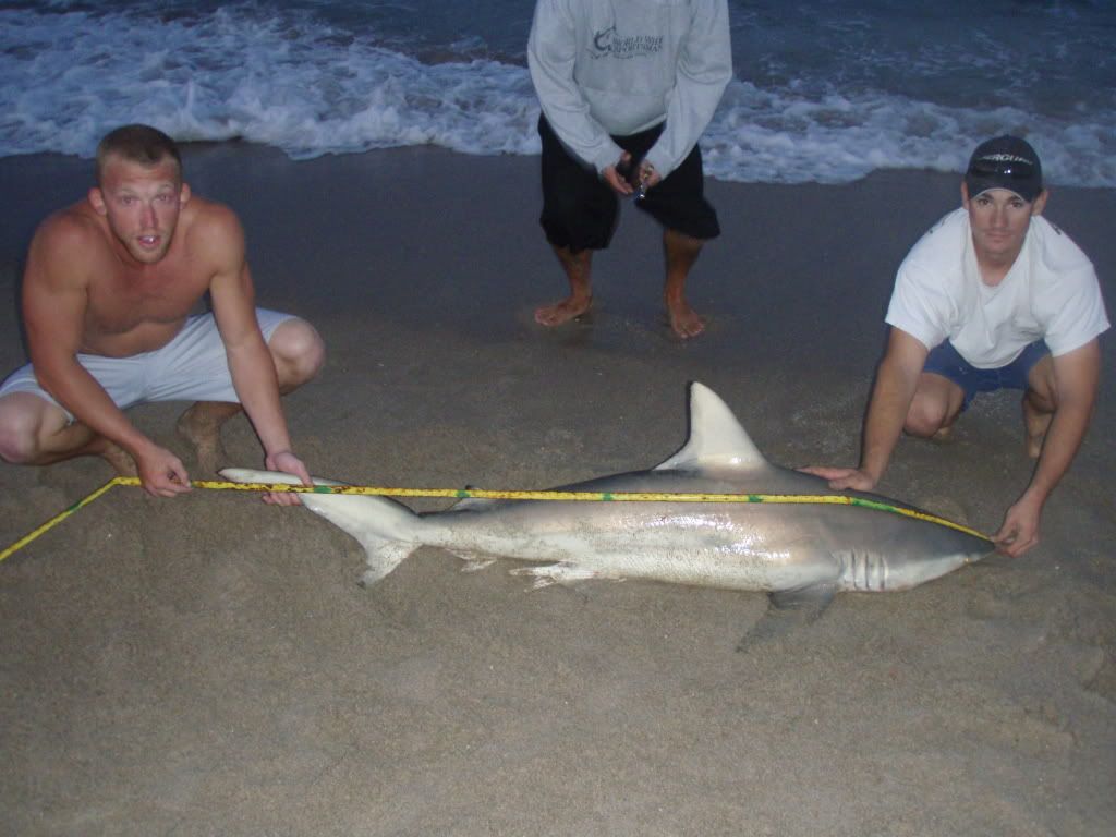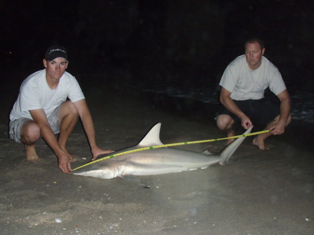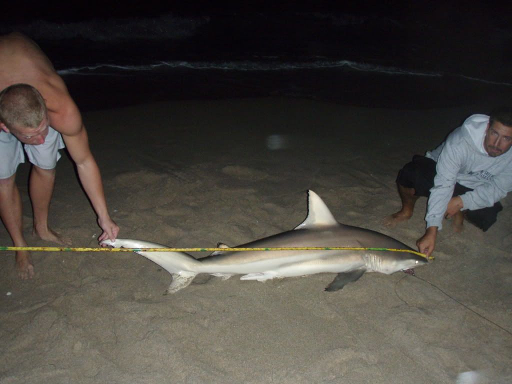 We hit the sand on thursday night to put in a couple of hours.We were going for the biggest on 80lb class and were greated by a monster hookup on kriss's 50w.That thing took off like a bat out of hell and didnt even slow down with 75%drag on it.With in a matter of less than 3mins were down to just a couple of wraps with this beast taking soild runs and not even stoping to get a rest.When it was all over we were left with a great story and a lesson learned.Back with braid.