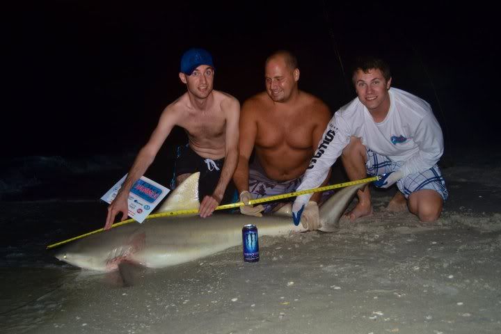 Just got word of a 9 foot 6 inch Dusky shark caught by a Panhandle team and they also caught two bulls over 7 foot . They are on the beach til Sunday so the pics will be up after then.