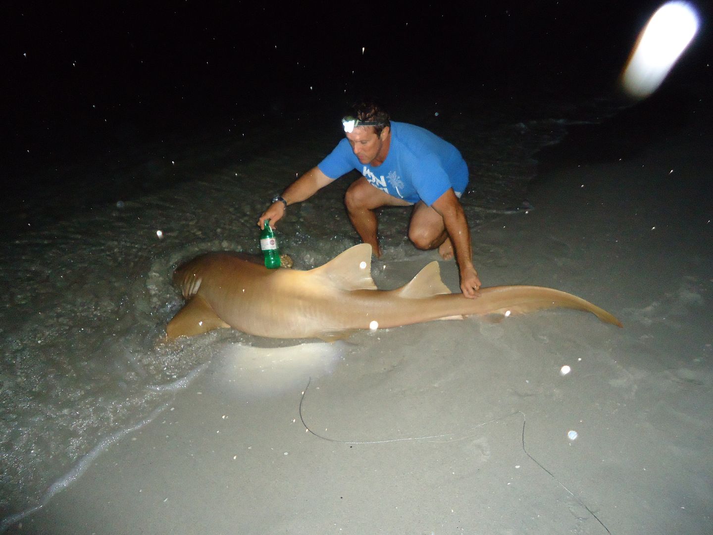 HUGE bull! Biggest I've ever had on or seen! Well I worked her into the shoreline and grabbed the wire....she was mad! When I felt it was time to tail her she made another violent headshake and out comes the hook!!! I thought this can't be happening!!! Then she threw water everywhere and was off to the deep. I just sat down in the sand and had a moment