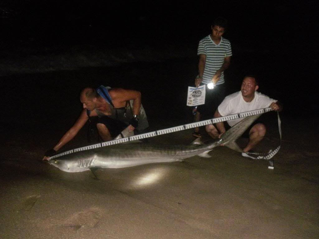 Will you are exactly right, Theres no denying on my part that the full length pictures are the actual length! 7 ft bull and 8 ft 2 tiger!! however with Big waves and having on a triple header at the time tail shots are off. I have no problem agreeing that those sharks are 7ft for the bull and 8ft 2 for the tiger!!!! I will be a lot more attentative in measuring next time, The triple header was madness with only 3 anglers and cost me to lose my biggest shark of the tournament which was burning my 16-0!!!