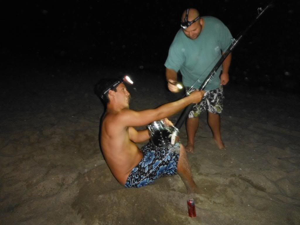 Went for a last chance at landing the Tourney Winner. We didn't catch what we hoped for but we landed two Blacktips before Midnight. It was about 11:45PM and we were itching to hear a clicker go off. As JD Hammer walked by heading for the inlet away from his rod for a second, there it is. The Clicker starts going out fast on Hammers 16/0. Yeahhhhh come on is it a Hammer???????? " It's just a Blacktip Partner ". LOL. We had some fun times during the Tourney. Props to my Teammates JD Hammer, Jimmy Dean, Shannon and JD Fagan. Always fun!!!