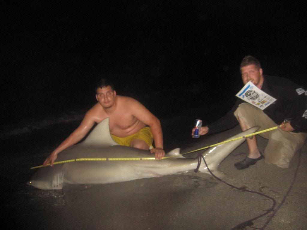 Shannon to answer your question about the 8 foot 8 inch Bull shark posted above that was caught from bridge by Team HotReelz Dylan who hooked it at dawn but was landed in the light of day.