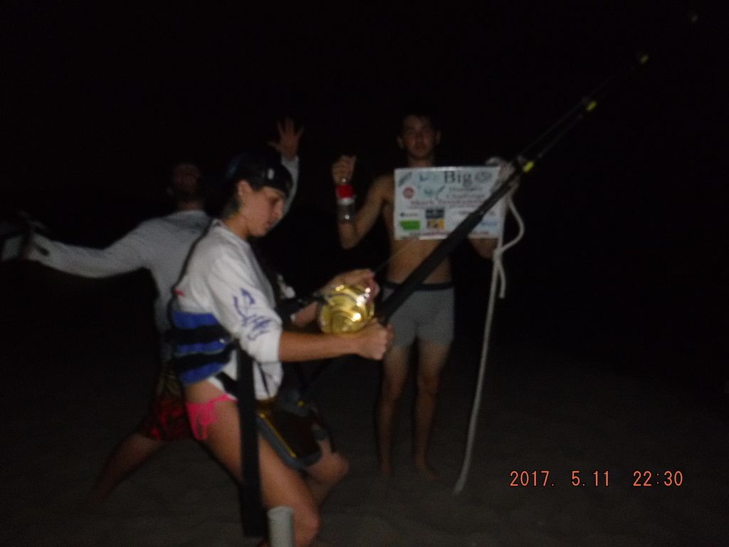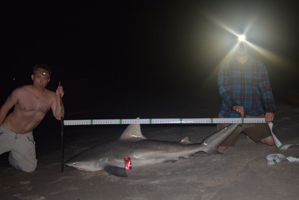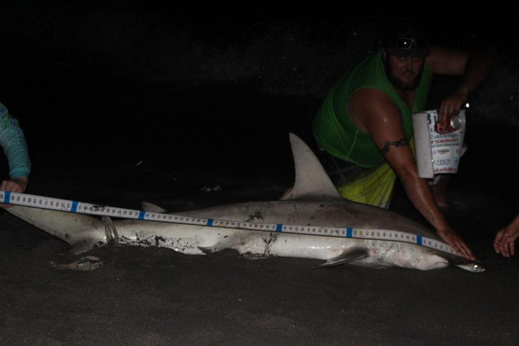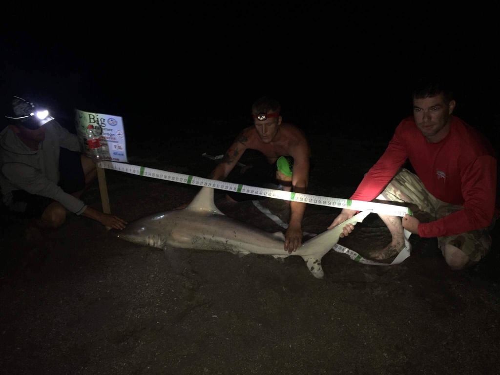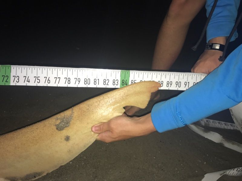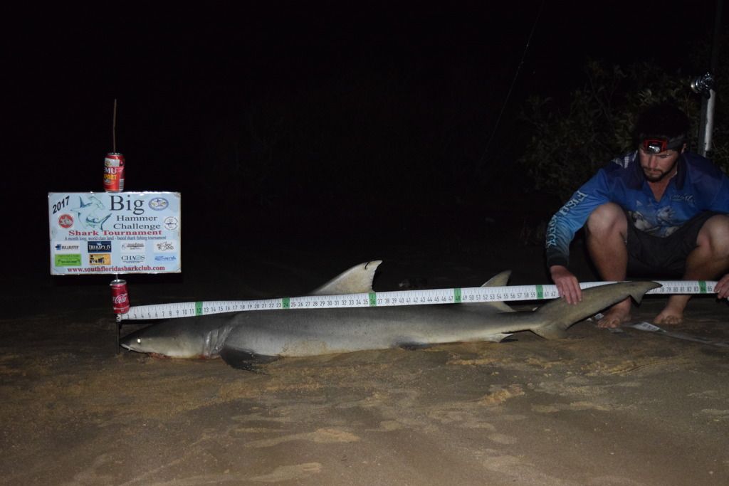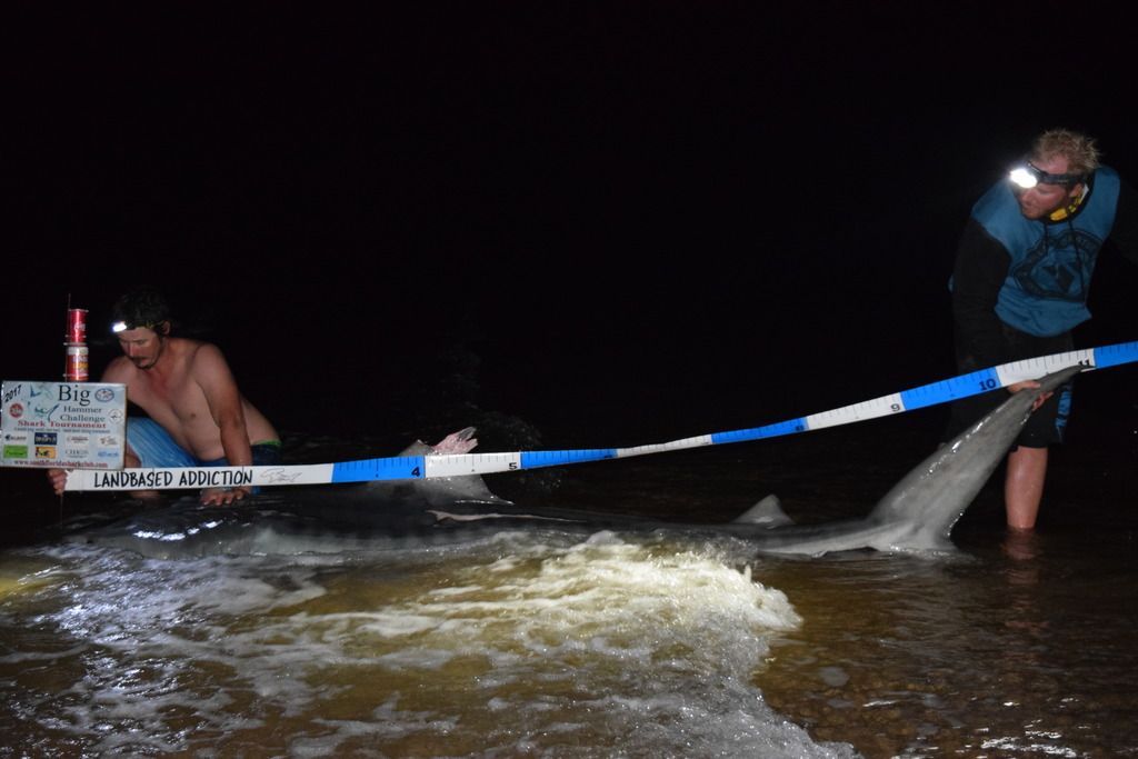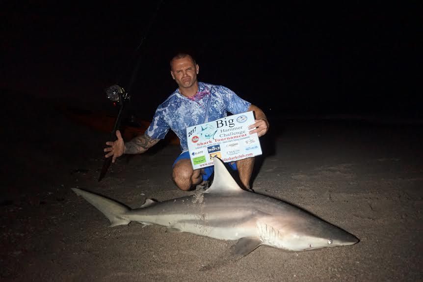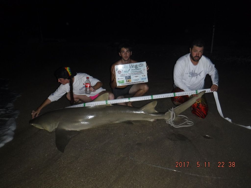 Brando caught and released a foul hooked hammer about the same size as the one pictured above, she was wore out so we cut the hook and released her fast, no time for pics. Later that night our tried and true kayak started to sink near the second sandbar as Cody paddled another bait, we all decided to go for a swim to bail him out and retrieve our vessel, a very eventful night on the sand to say the least.