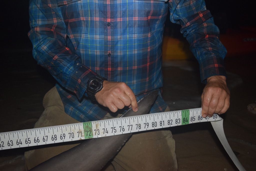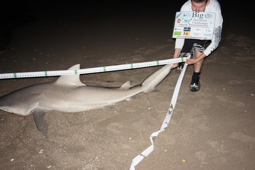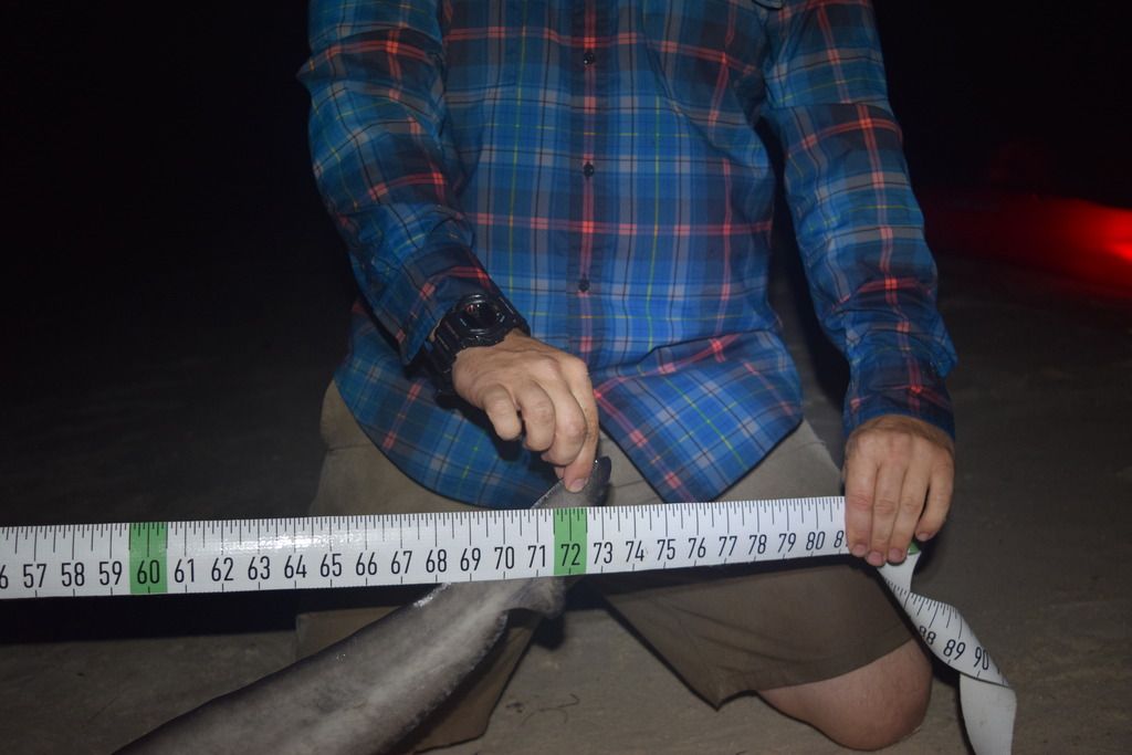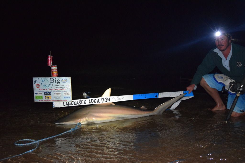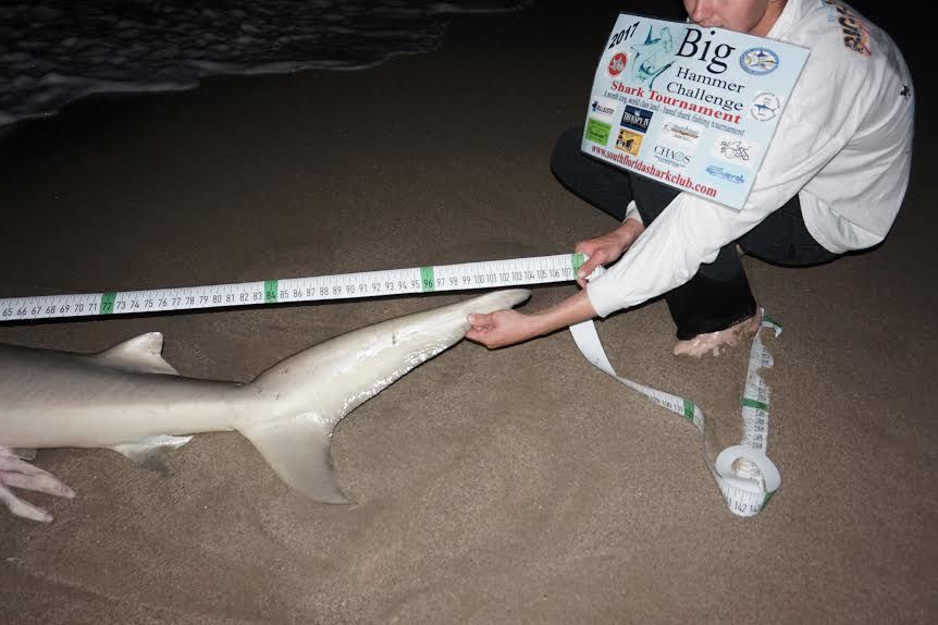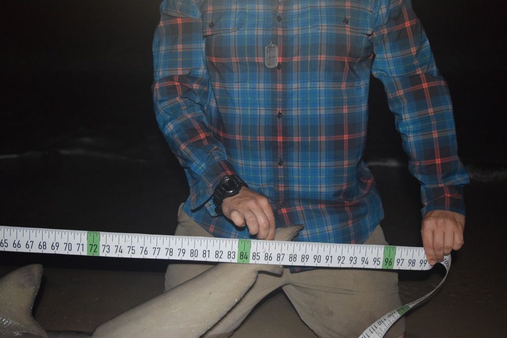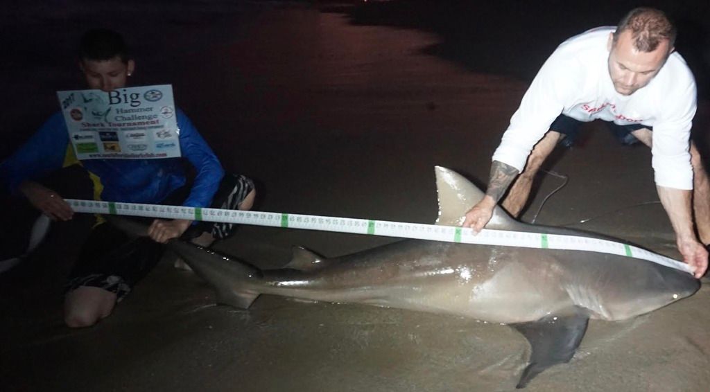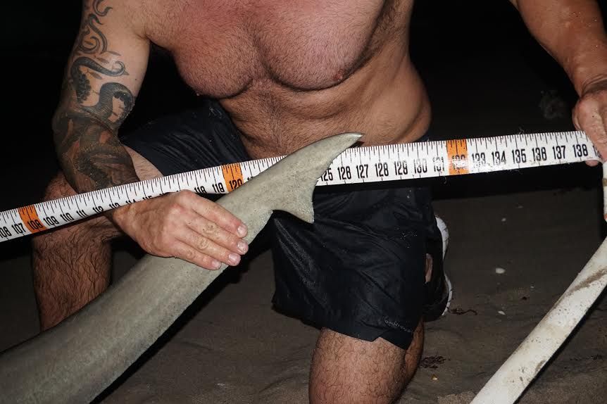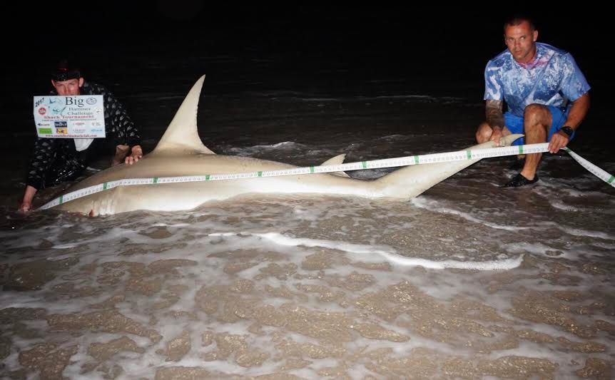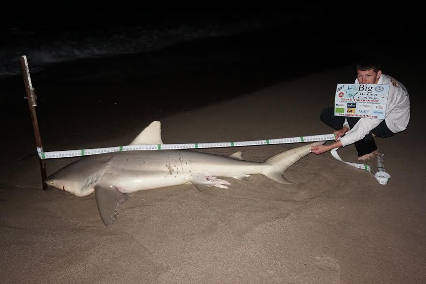 Brando caught and released a foul hooked hammer about the same size as the one pictured above, she was wore out so we cut the hook and released her fast, no time for pics. Later that night our tried and true kayak started to sink near the second sandbar as Cody paddled another bait, we all decided to go for a swim to bail him out and retrieve our vessel, a very eventful night on the sand to say the least.
