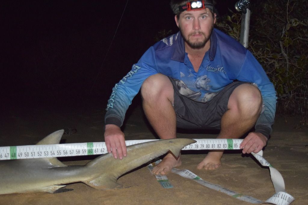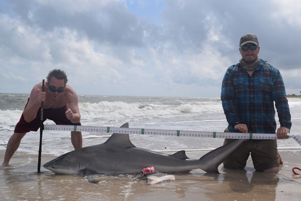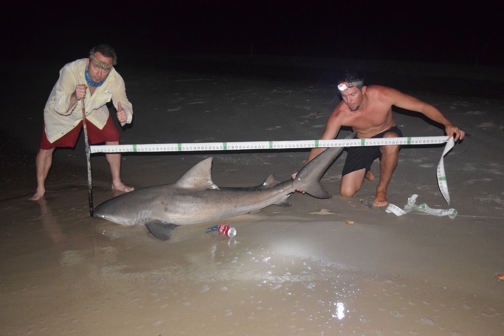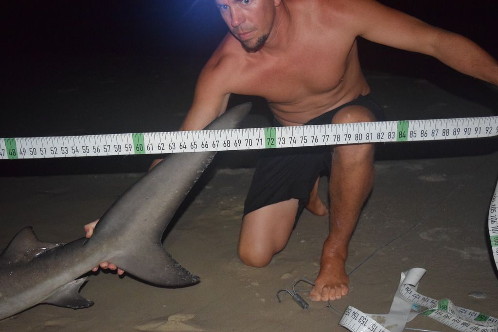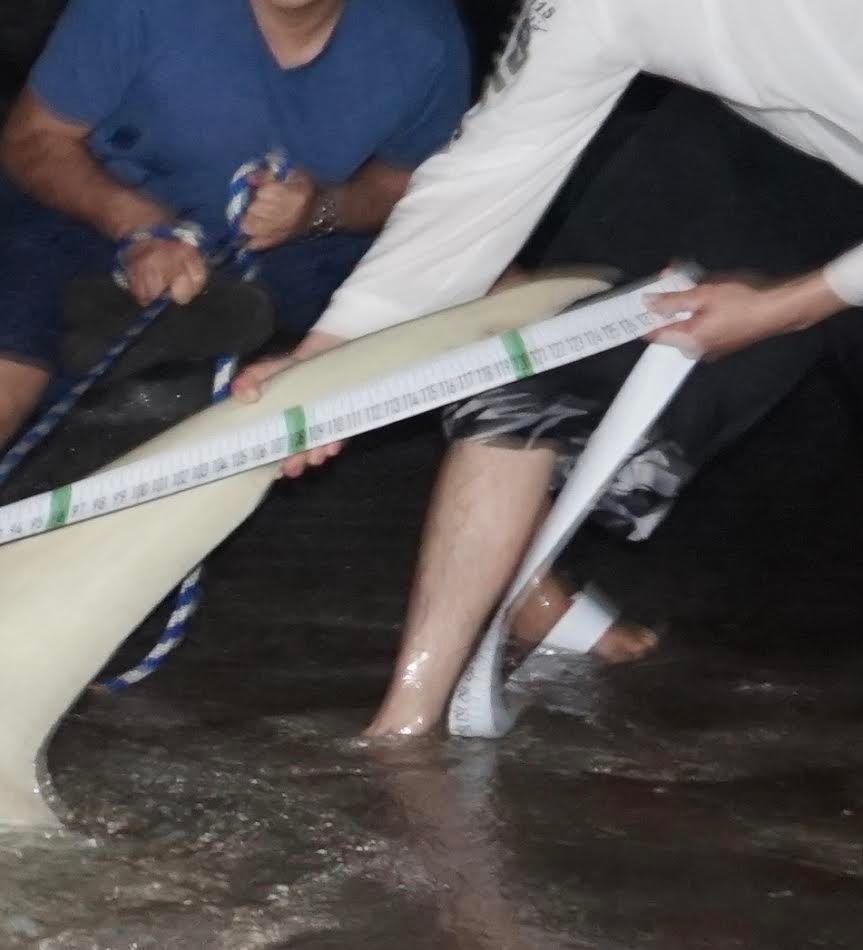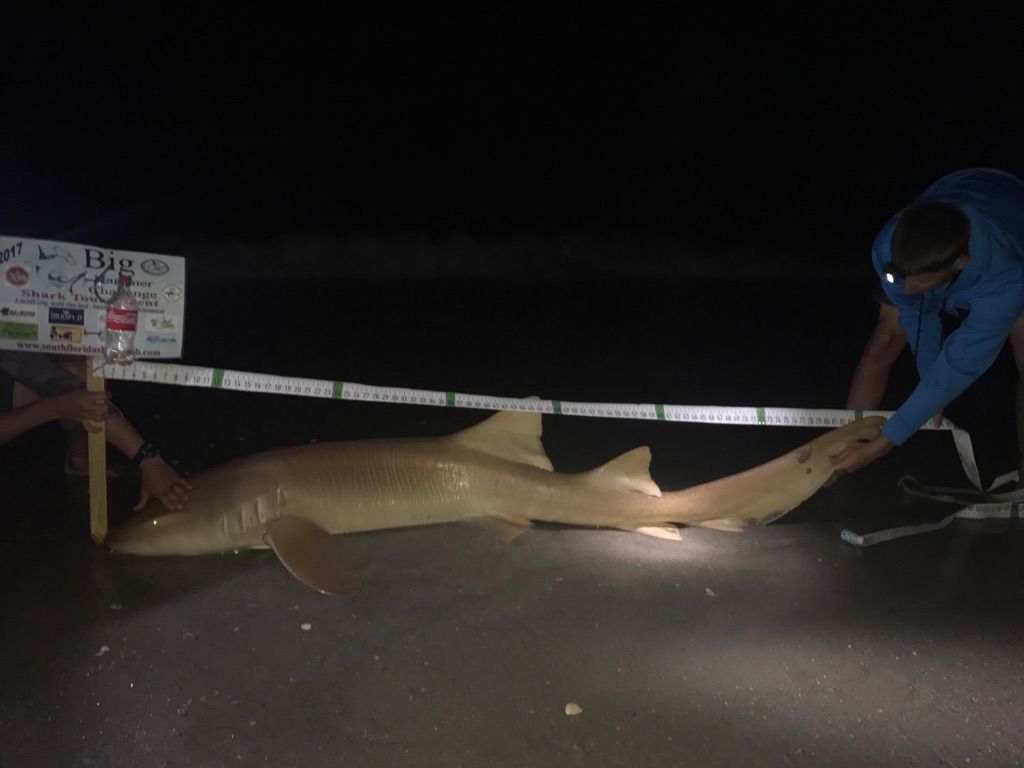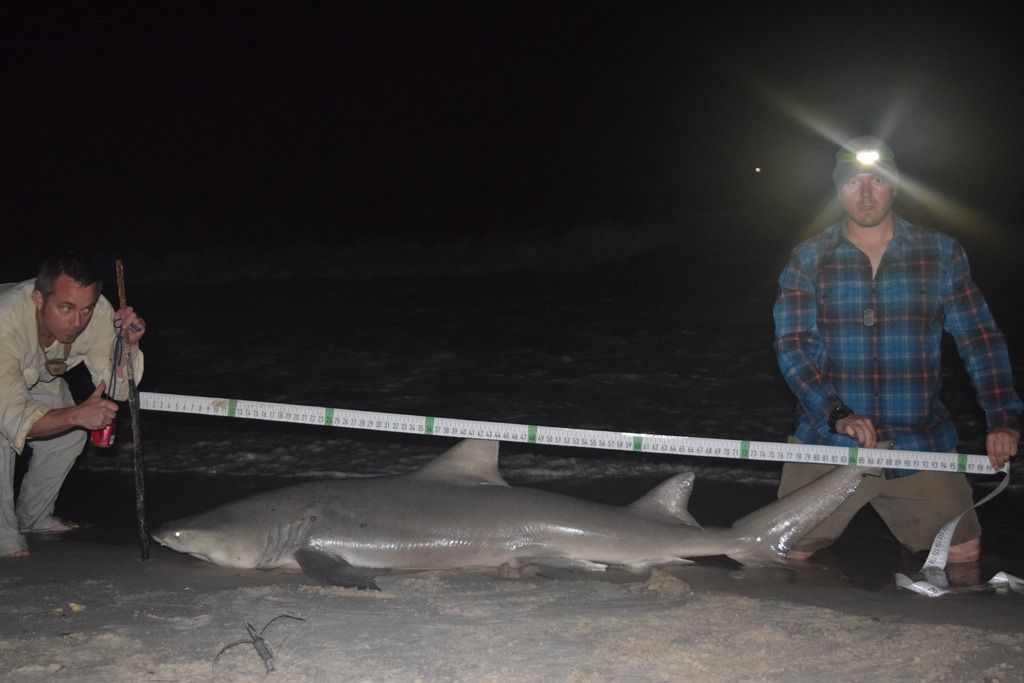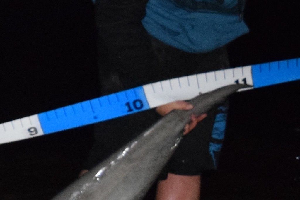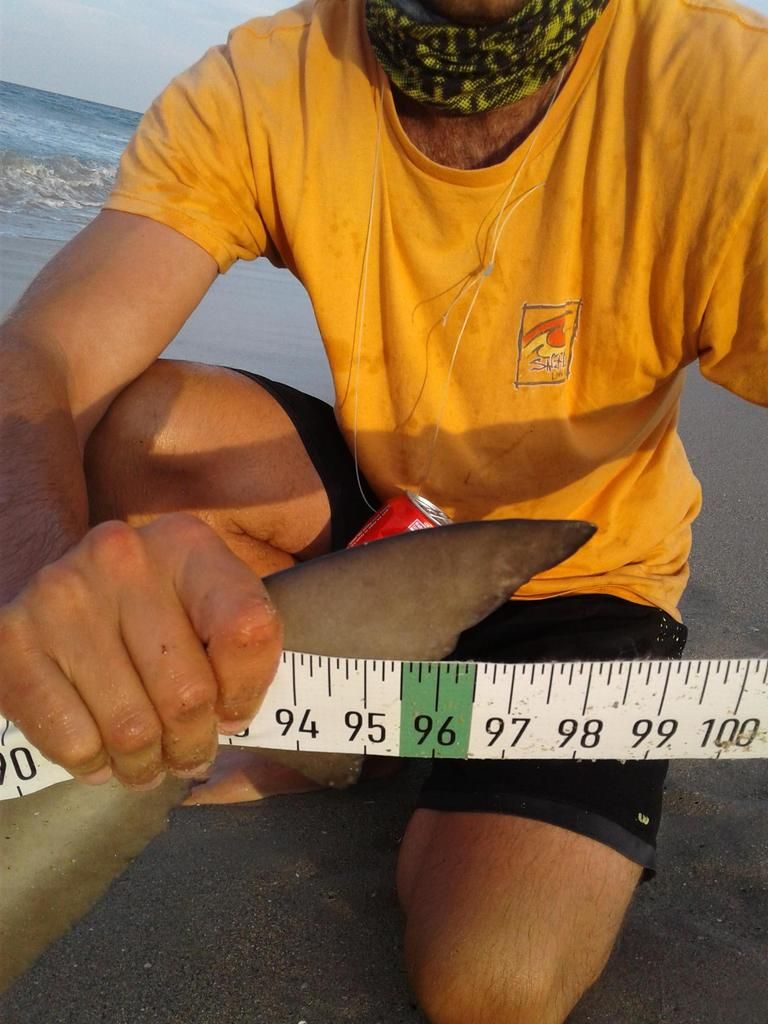 Brando caught and released a foul hooked hammer about the same size as the one pictured above, she was wore out so we cut the hook and released her fast, no time for pics. Later that night our tried and true kayak started to sink near the second sandbar as Cody paddled another bait, we all decided to go for a swim to bail him out and retrieve our vessel, a very eventful night on the sand to say the least.