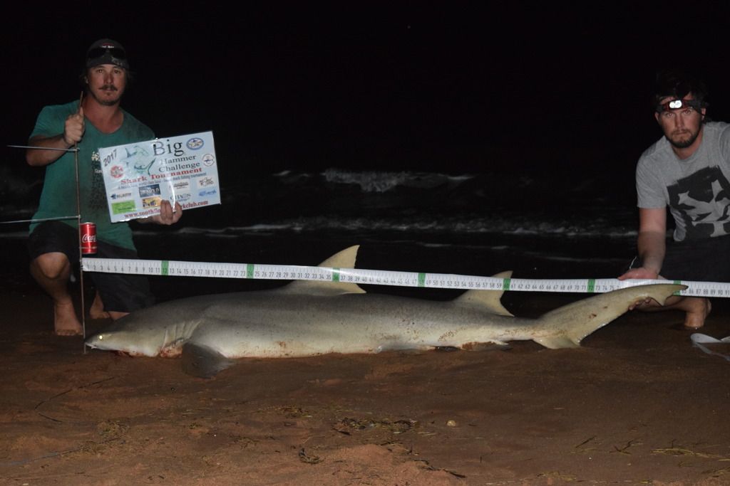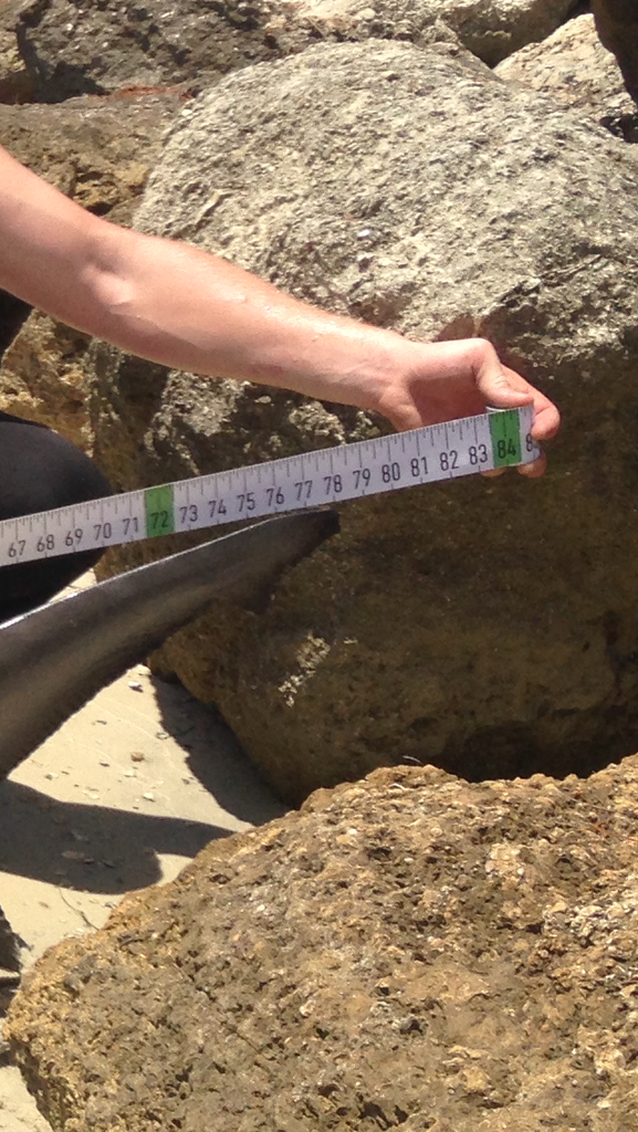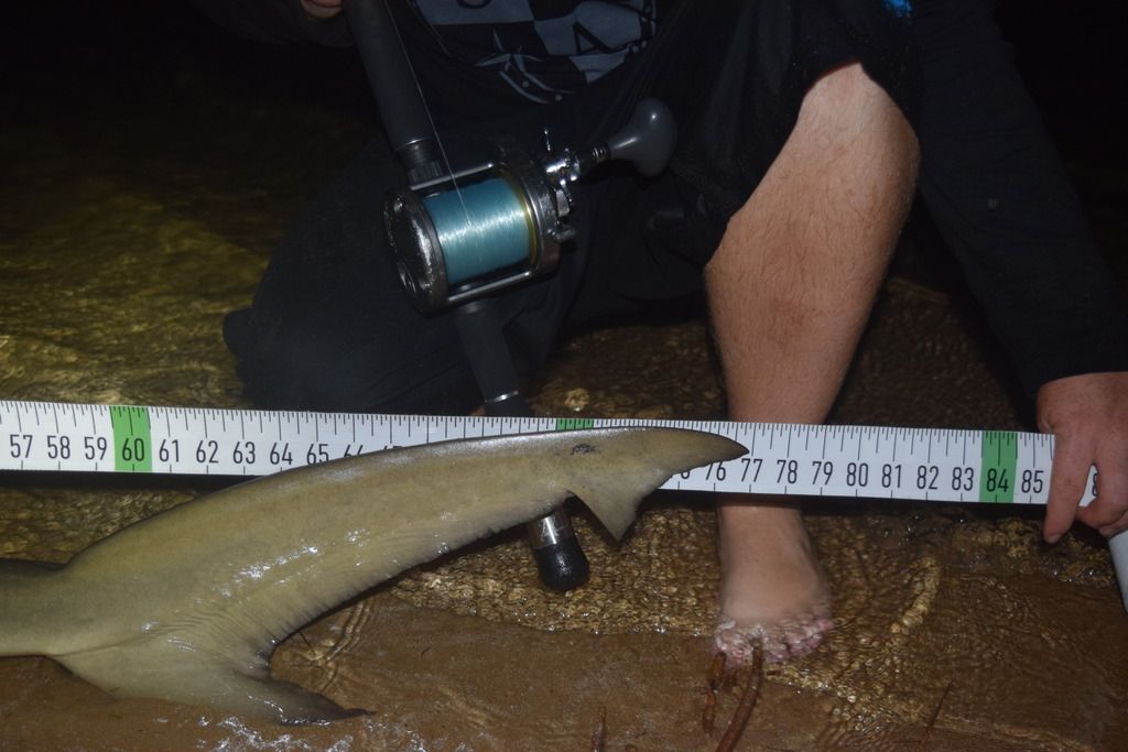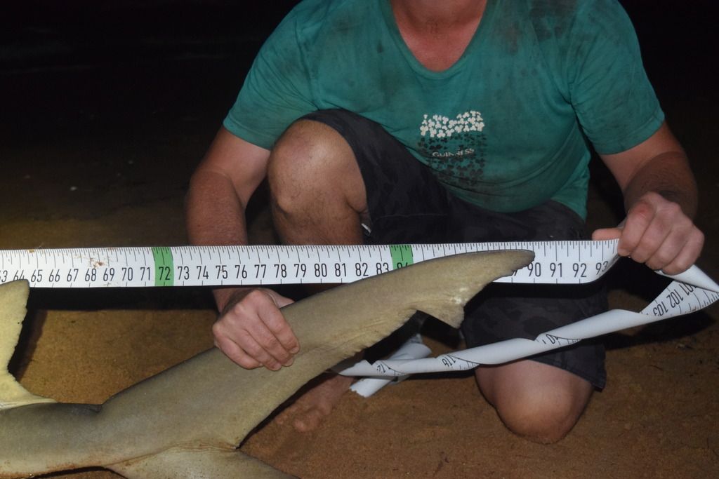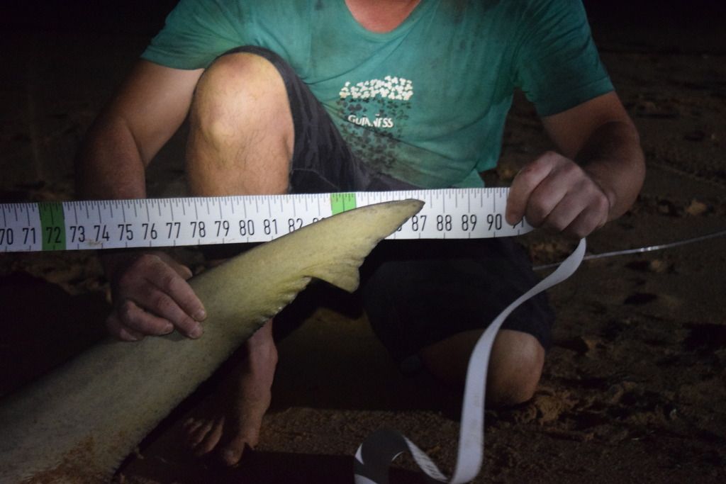 This shark came in with a plastic band type strap around its neck and we cut it off and it swam off just fine afterwards.