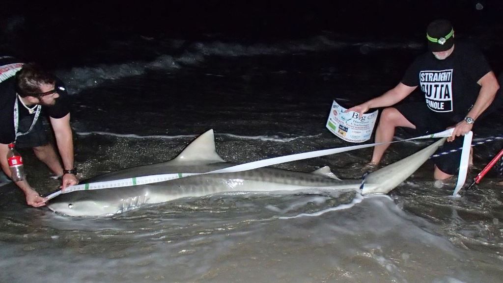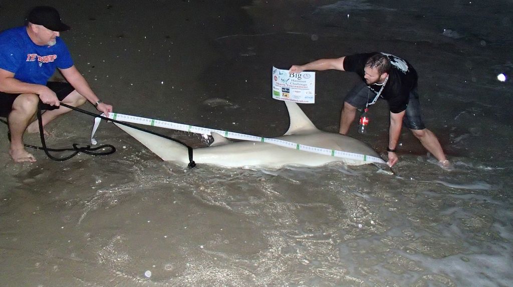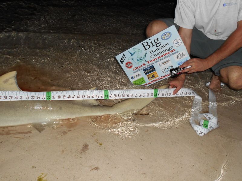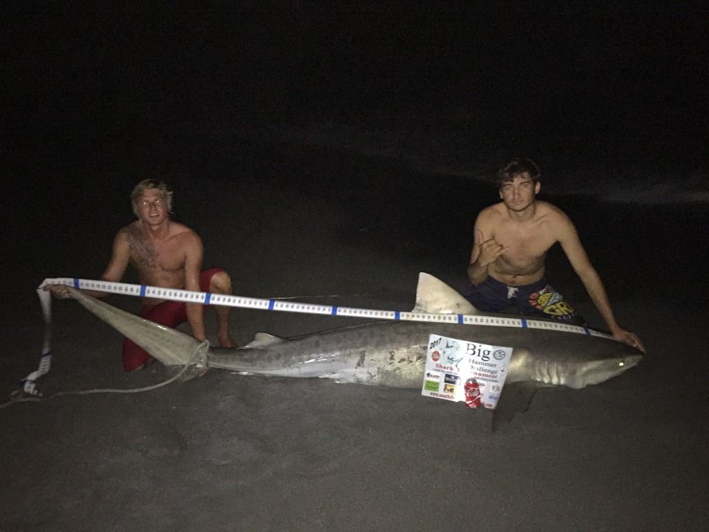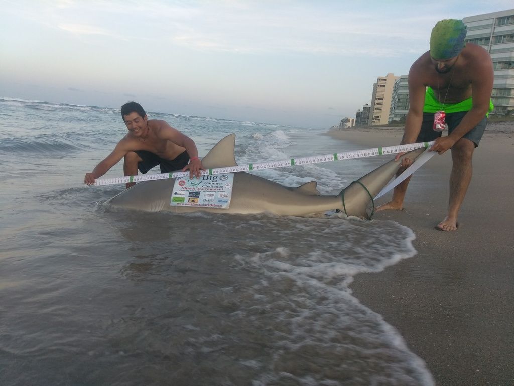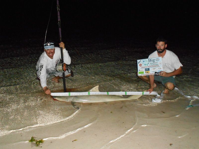 I am proud of the all the big sharks that the fishermen in this years BHC are catching,it is one of the best production of big sharks in our tourney's history. There have been more over 11 foot sharks caught in this years BHC than in any of the previous years.I am again like a proud dad watching his kids growing up and hitting home runs at a big game. I just want to tell you all that I am proud of all of you; Proud of the out of state Teams and proud of Australia'a Team 'Downunder' big Tiger shark catches and participation --I am honored to have so many hard core shark fishermen with so much heart catching so many big fish and displaying so much dedication to the sport. When the Ninth Biggest shark caught in the Big Hammer Challenge is an 11 foot 2 Hammerhead I can say we have some of the very best land-based fishermen participating in this tournament. Dan Tabatabai has once again proven that he is one of the all time greats by taking the lead with a huge 13 ft 1 1/2 inch Hammerhead shark. Dan and his Team are on a roll having just won 1st thru 3rd Place in Fine's Seven Day Shark Tournament. We still have 10 days of competition left -so go out there and catch the biggest shark that has ever been caught from a shoreline anywhere on the planet ,good luck and please BE SAFE.