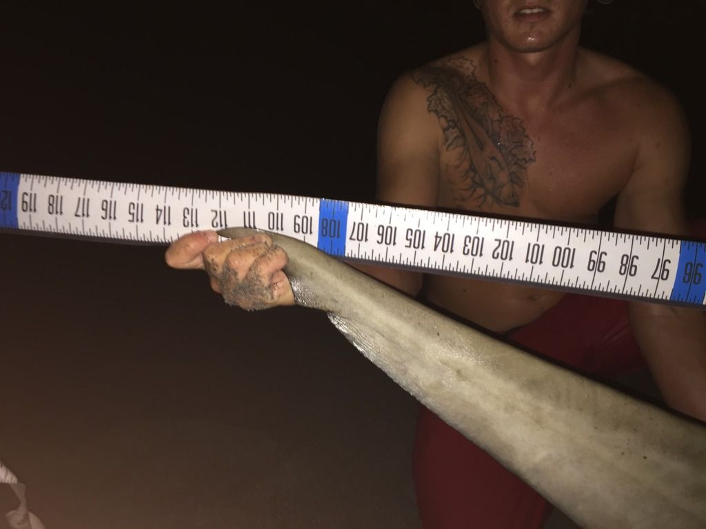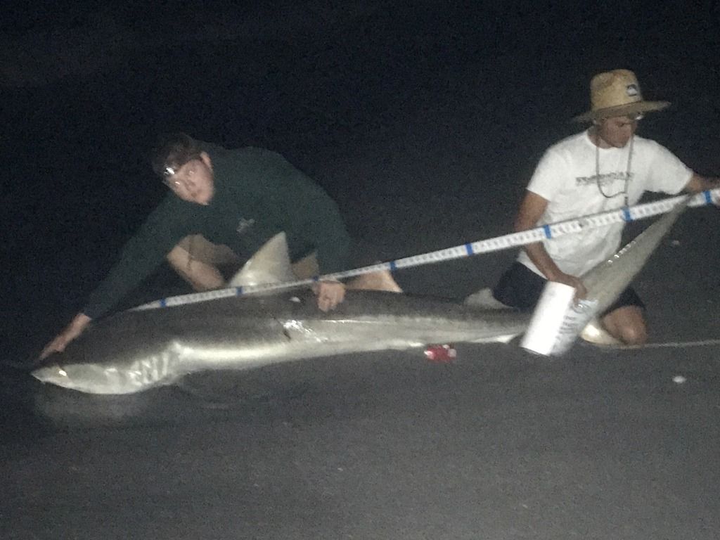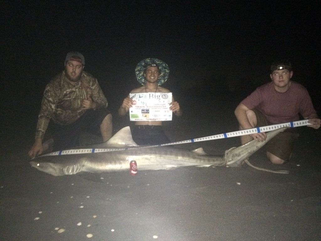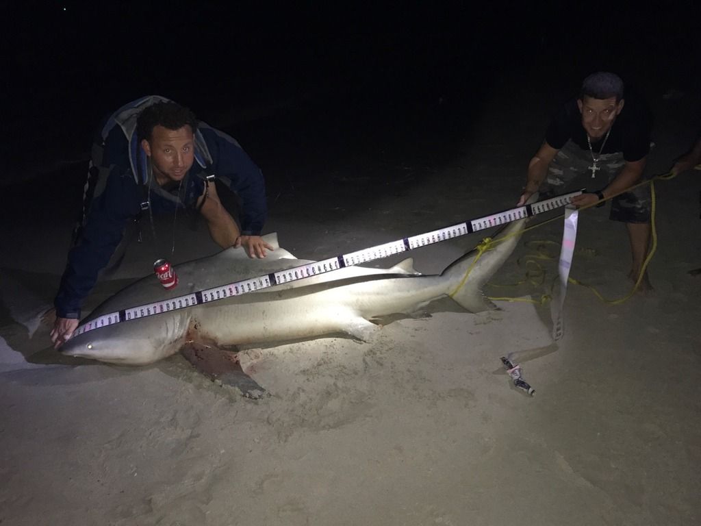 I am proud of the all the big sharks that the fishermen in this years BHC are catching,it is one of the best production of big sharks in our tourney's history. There have been more over 11 foot sharks caught in this years BHC than in any of the previous years.I am again like a proud dad watching his kids growing up and hitting home runs at a big game. I just want to tell you all that I am proud of all of you; Proud of the out of state Teams and proud of Australia'a Team 'Downunder' big Tiger shark catches and participation --I am honored to have so many hard core shark fishermen with so much heart catching so many big fish and displaying so much dedication to the sport. When the Ninth Biggest shark caught in the Big Hammer Challenge is an 11 foot 2 Hammerhead I can say we have some of the very best land-based fishermen participating in this tournament. Dan Tabatabai has once again proven that he is one of the all time greats by taking the lead with a huge 13 ft 1 1/2 inch Hammerhead shark. Dan and his Team are on a roll having just won 1st thru 3rd Place in Fine's Seven Day Shark Tournament. We still have 10 days of competition left -so go out there and catch the biggest shark that has ever been caught from a shoreline anywhere on the planet ,good luck and please BE SAFE.