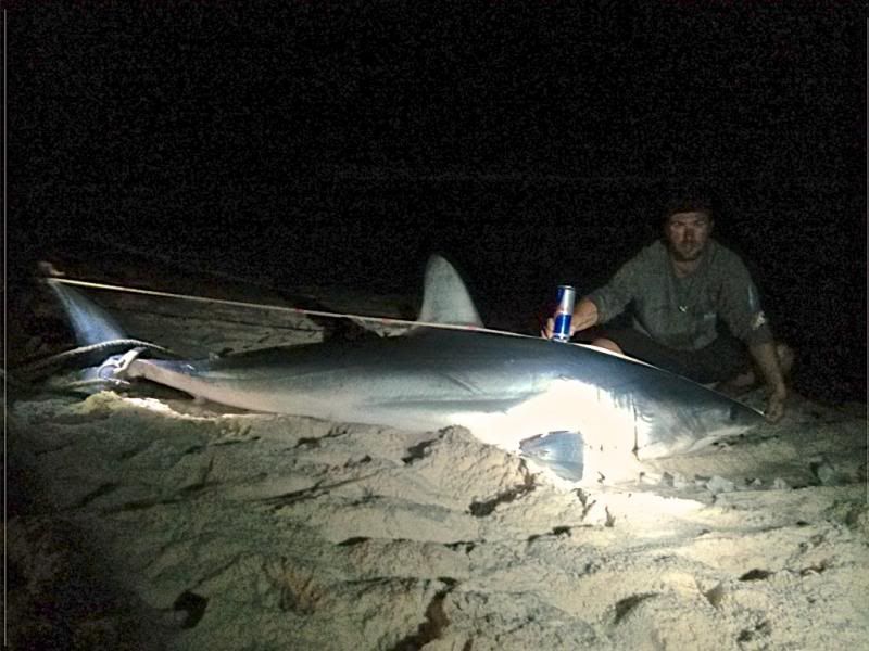 Not a bad first check in for Team True Blue! Joey Polk reeled in a 9' 3" Mako to close out Saturday night! This chore took him a little over an hour and a half of pretty solid reeling!