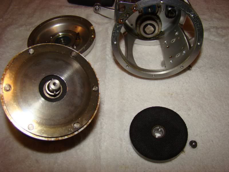 Now this is what caused the foul smell. What happened is a little oil or grease got on the drag washer from the factory, so when the reel got hot from the Jiant Tuna peeling heavy drag it burnt some of the oil. I was instructed to clean the drag washer with soap, water and tooth brush to remove anything on the washers.