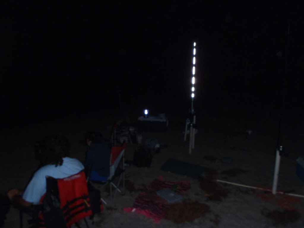 I threw a 2 inch band of red reflective tape on my DLX35H and two one inch bands on my 14/0's rod just for the hell of it. (I had some left over from putting some on my canoe so I dont get "BUZZED" by idiots in boats anymore). Mine flashes pretty well, but NOTHING like your rod man lets me know where the rods are while I paddle out the baits. I usually have goofballs turning lights on and off "looking for shells" or whatever they're doing and moving around while Im out there not sure which way I need to go to keep the lines straight