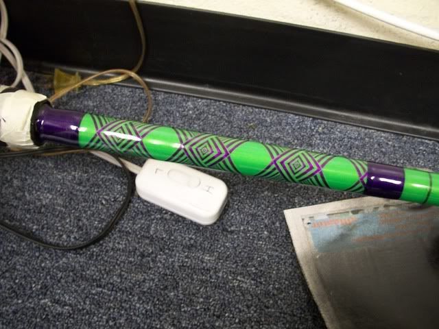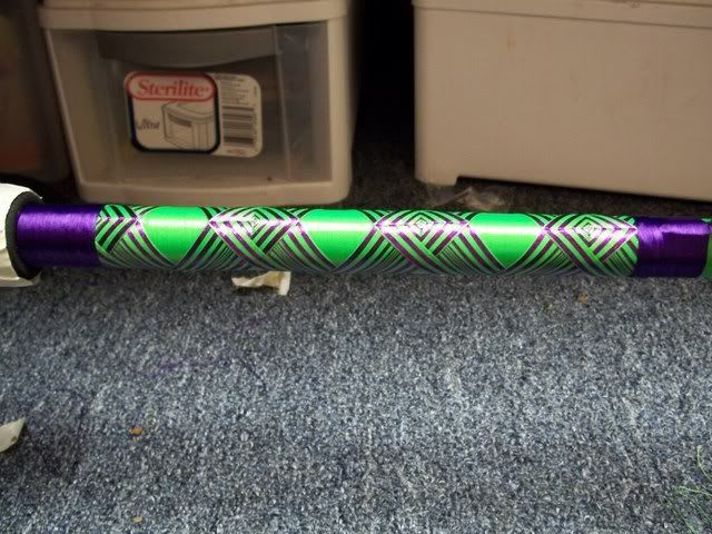 Did a diamond chevron buttwrap which made me crosseyed from looking at it to much. Color and wrap remind me of the Riddler.