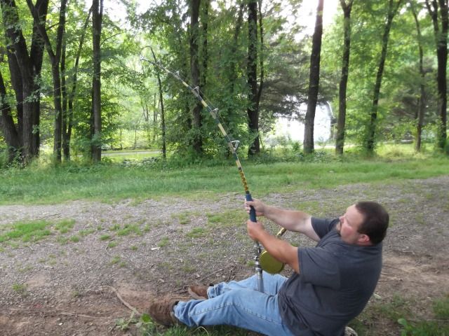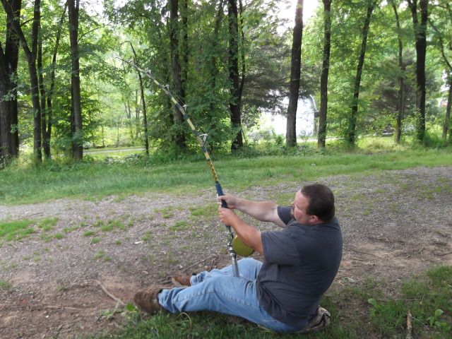 I done some drag checking with a Penn 130 loaded with straight 200lb mono this afternoon playing around. This is 50lbs, 60lbs, 70lbs, and 80lbs on a beast of a rod. Its a 130 or unlimited sized trolling blank with a 26 tip. I wish I knew what brand the blank is because it is a good one, very comfortable, and a little faster actioned then most trolling blanks. I am hooked to my pickup in the pics. 50lbs was a cake walk, could hold that for a long, long time I am sure with line pulling off of it. I did not realize that I was leaning more and more until looking at the pics. Even 80lbs was not that bad, but I am in my yard and not on the sand, that is my disclaimer, I know somebody will say that, lol. I think I could hold 80lbs for a few minutes like that with line being pulled off, not long though, a big harness would come in handy here.