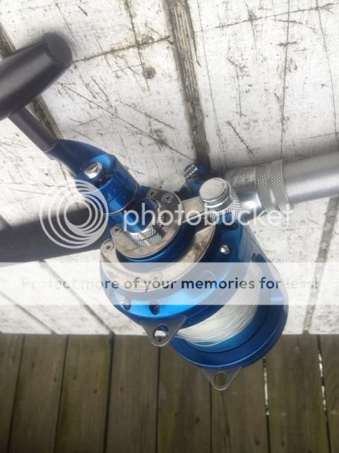 Reel is loaded with around 450/500yards of what I believe is 100lb Powerpro with a 80lb mono topshot.